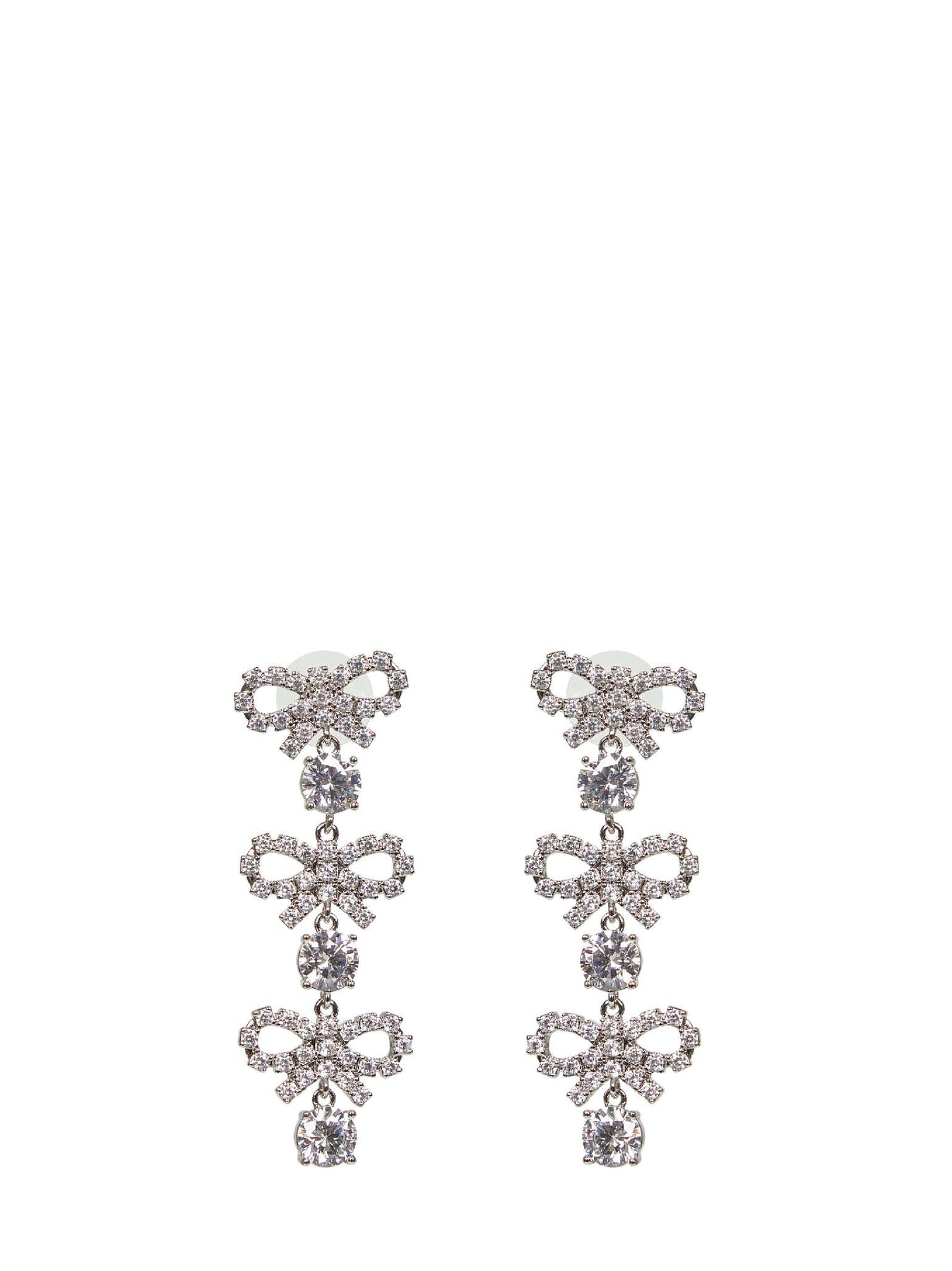 •Back pin fastening; for pierced ears •Micro crystal-embellished bows •Maxi central crystals •Silver plated brass design •Length: 2.05 cm, Height: 5.9 cm •Silver color •100% Brass •Made in Extra EU