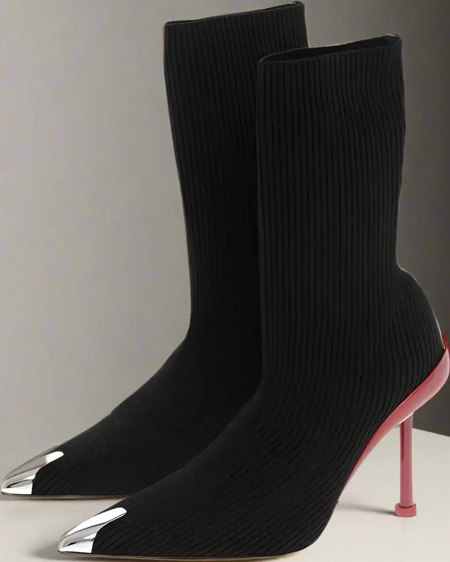 Alexander McQueen Metal Toe Sock Booties with Stiletto Heel 10cm