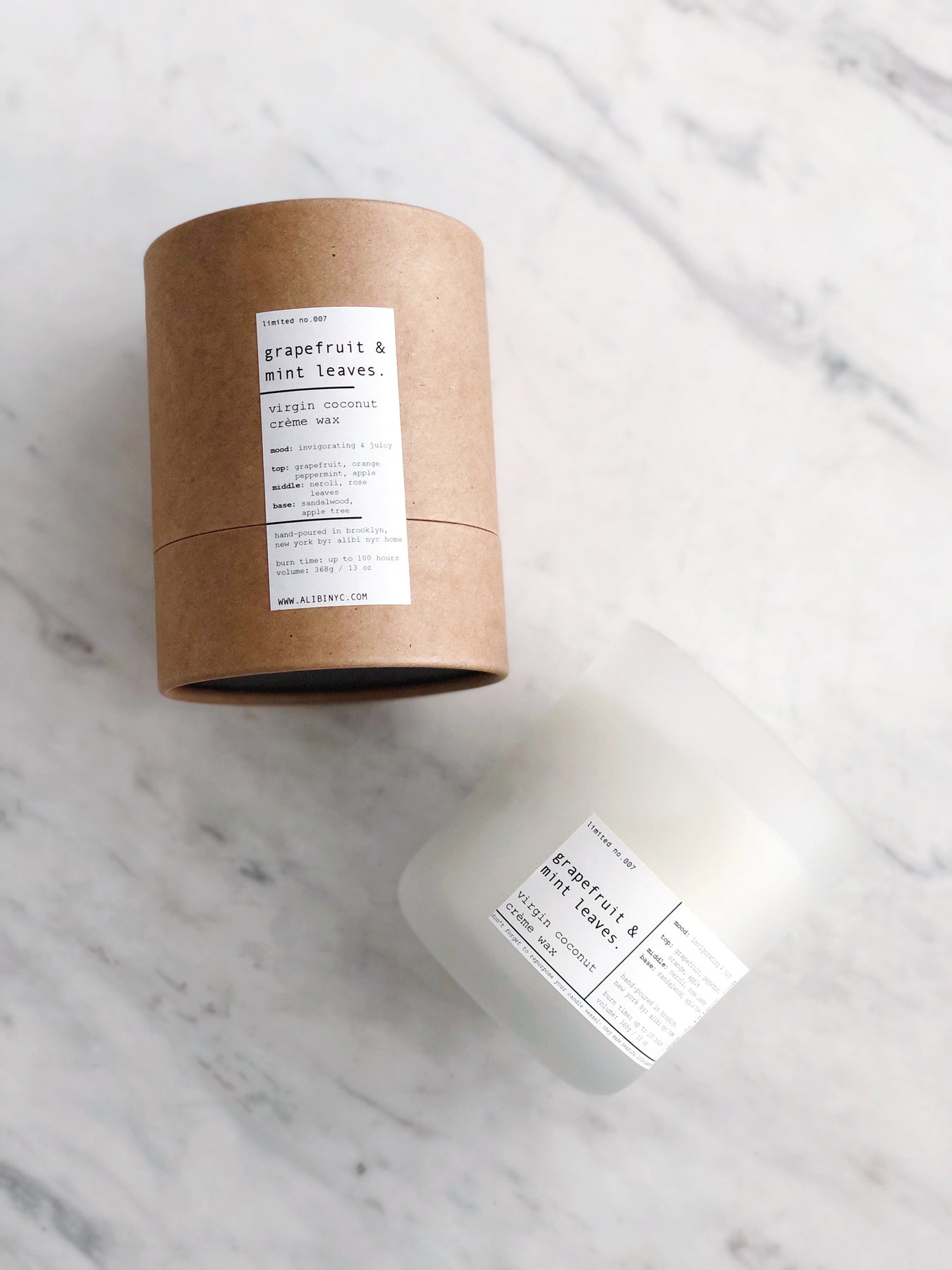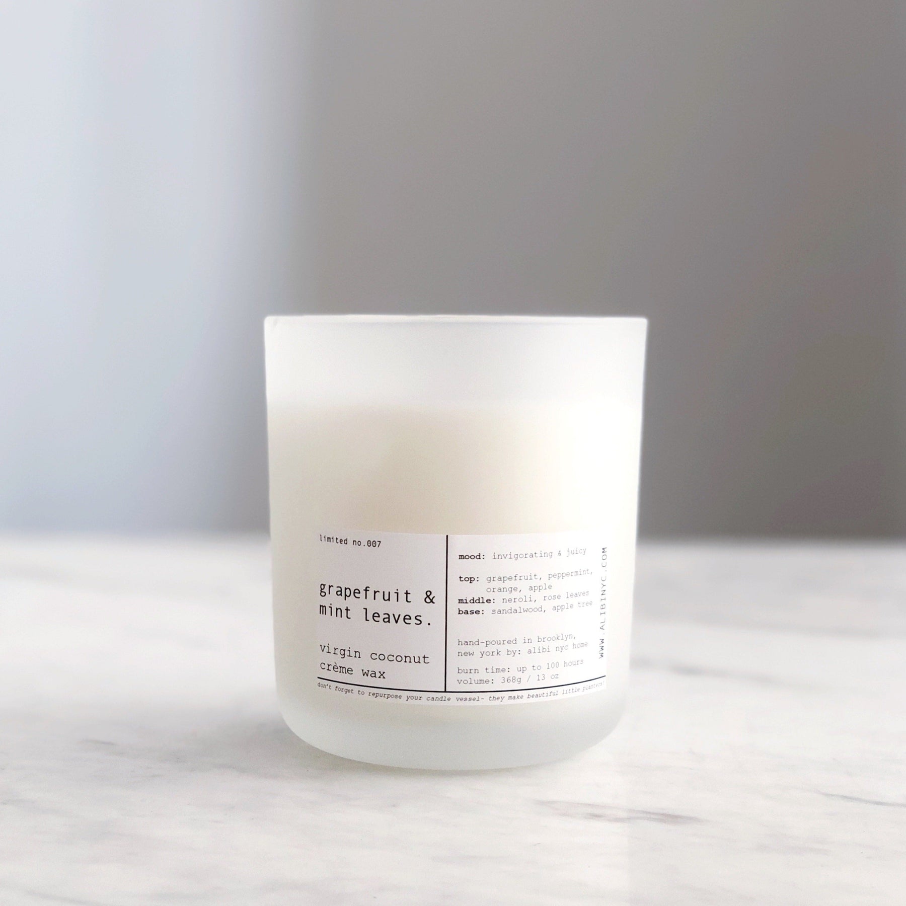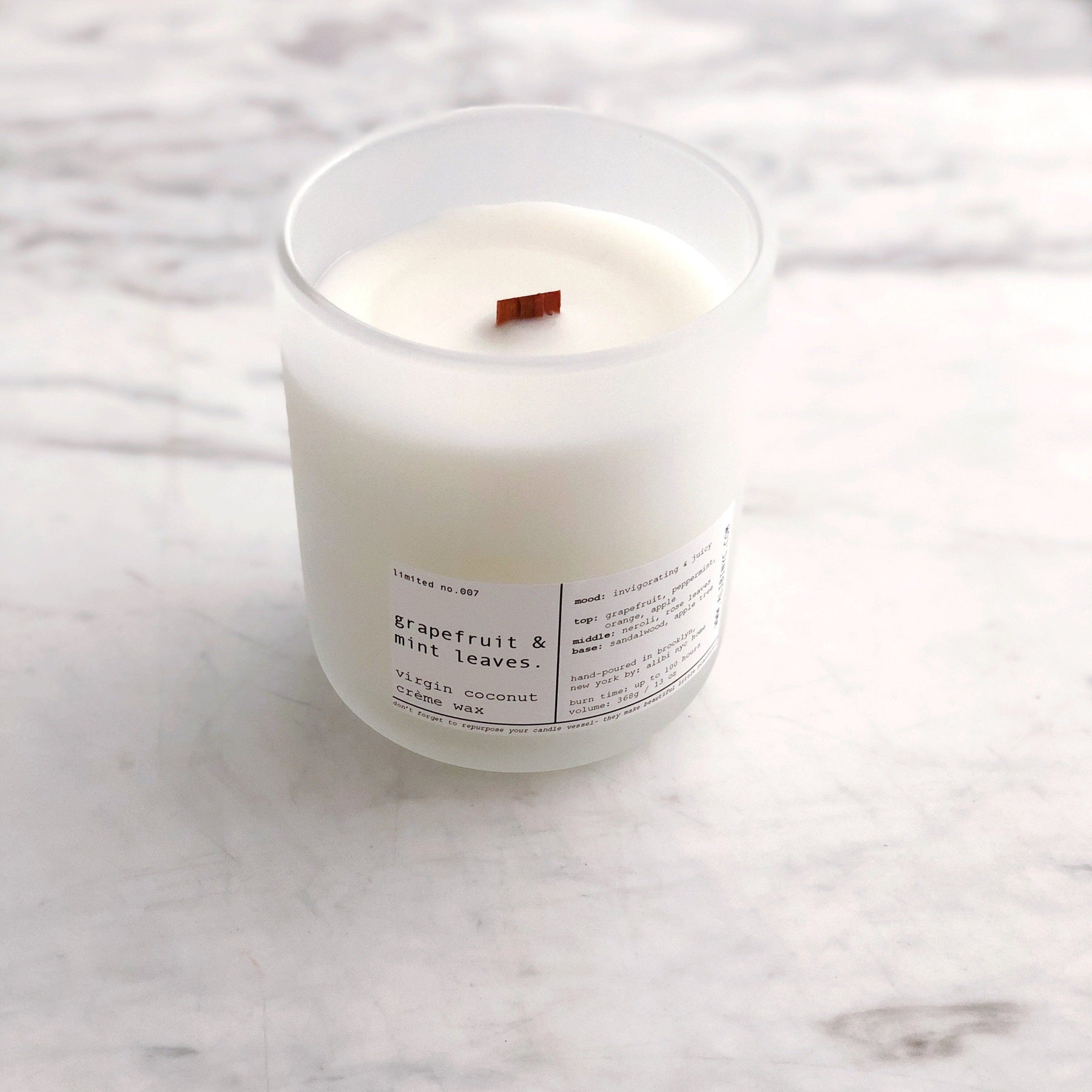 GRAPEFRUIT & MINT LEAVES | VIRGIN COCONUT CRÈME WAX & WOODEN WICK CANDLE >