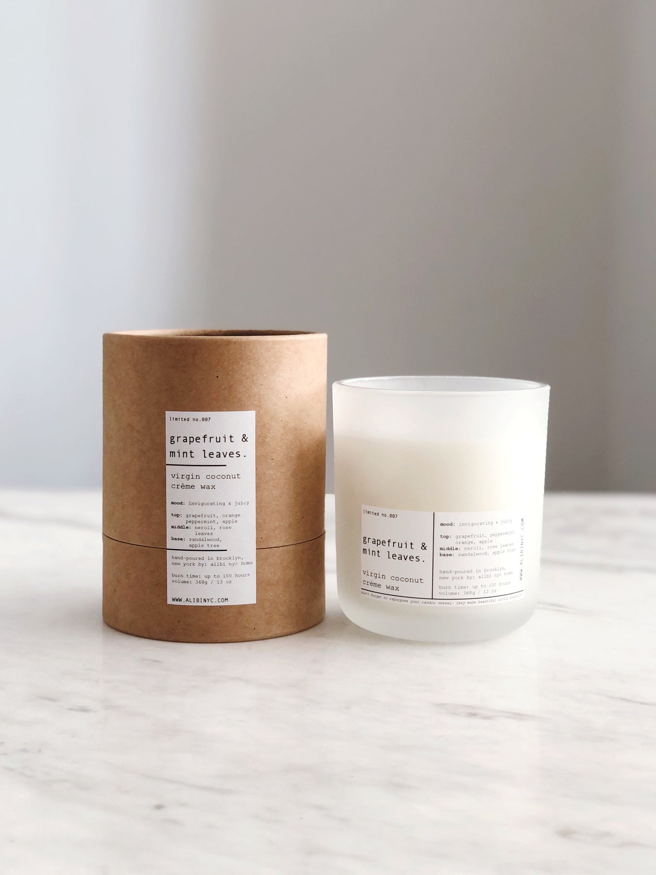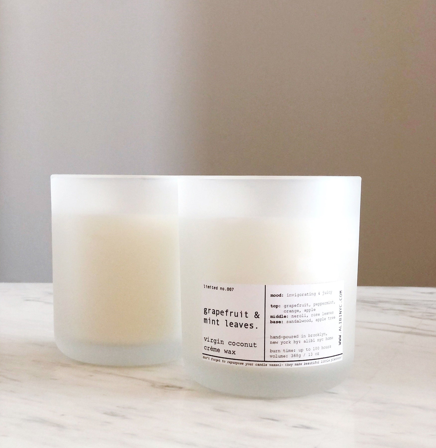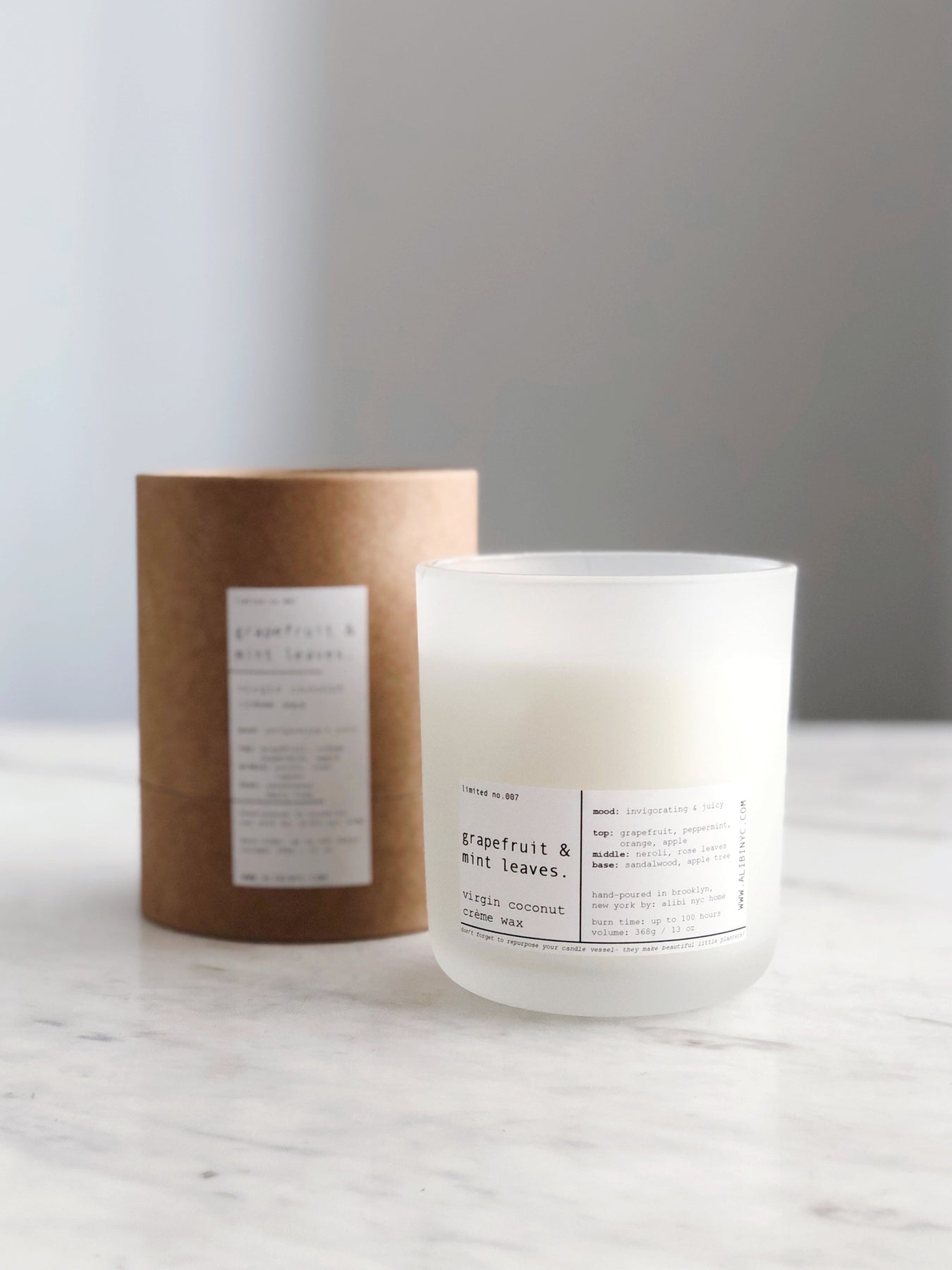 GRAPEFRUIT & MINT LEAVES | VIRGIN COCONUT CRÈME WAX & WOODEN WICK CANDLE >