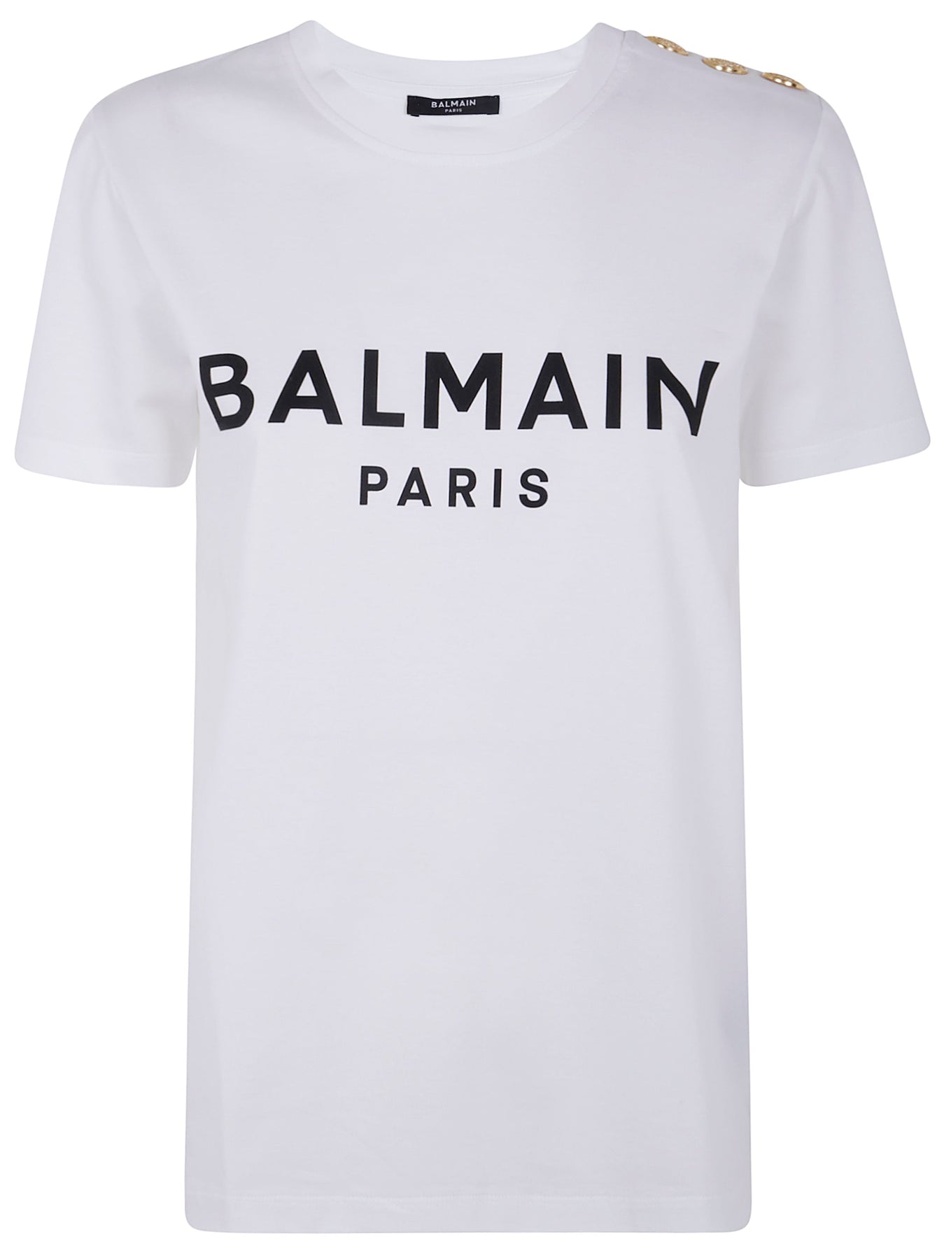 Balmain Women 3 Buttons Balmain Printed T-Shirt