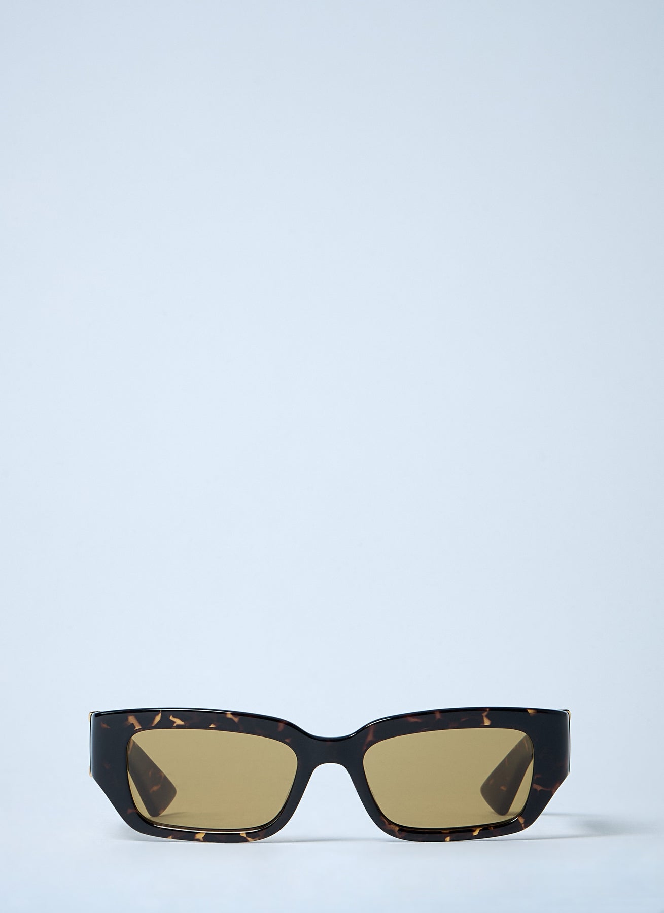 Rectangular sunglasses in polyamide with gold-finished split ribbon detailing.