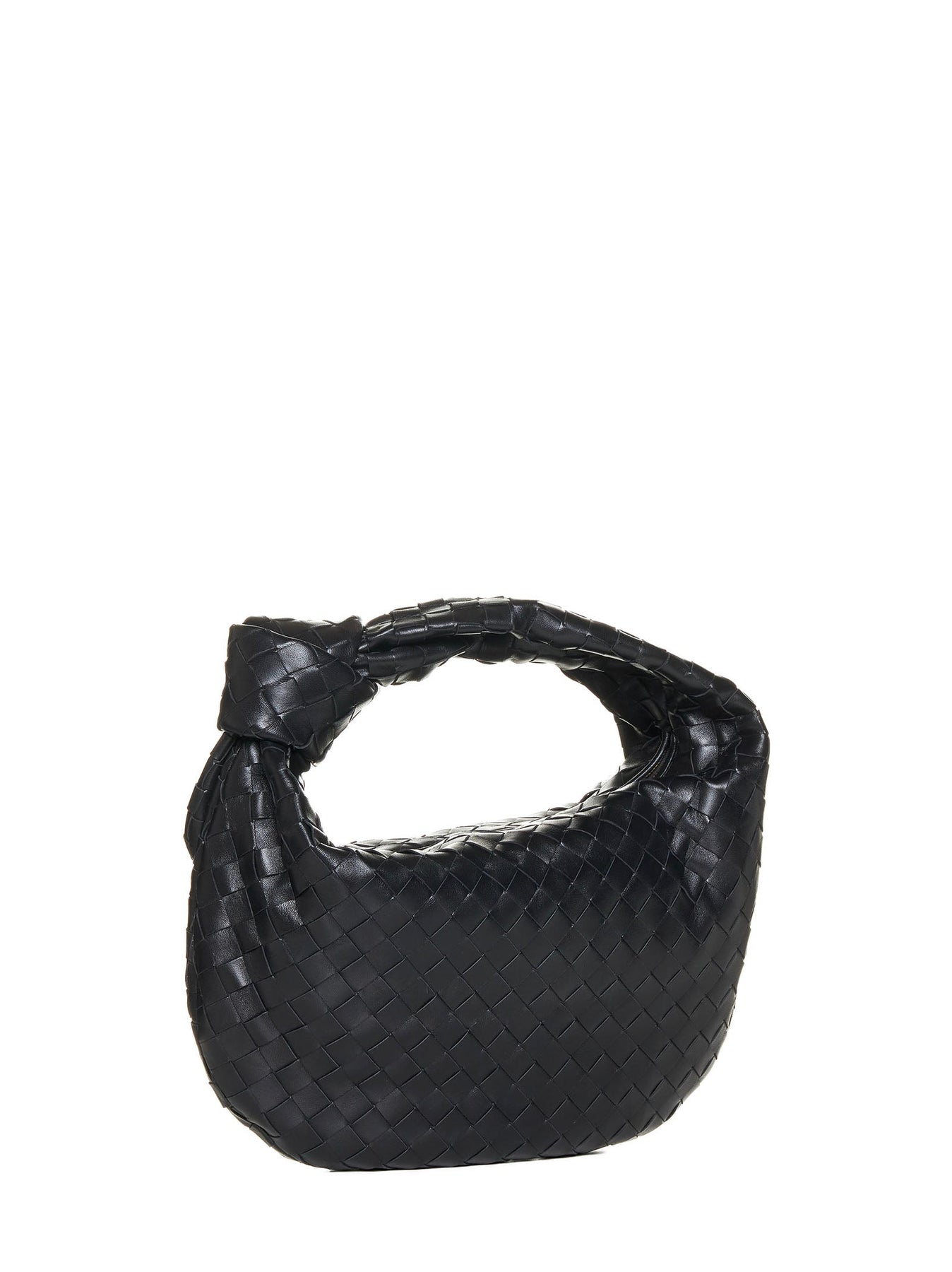 •Teen Jodie bag •100% woven leather •Black color •Knotted handle •Zip closure •Internal zip pocket •Gold-tone metal hardware •Made in Italy