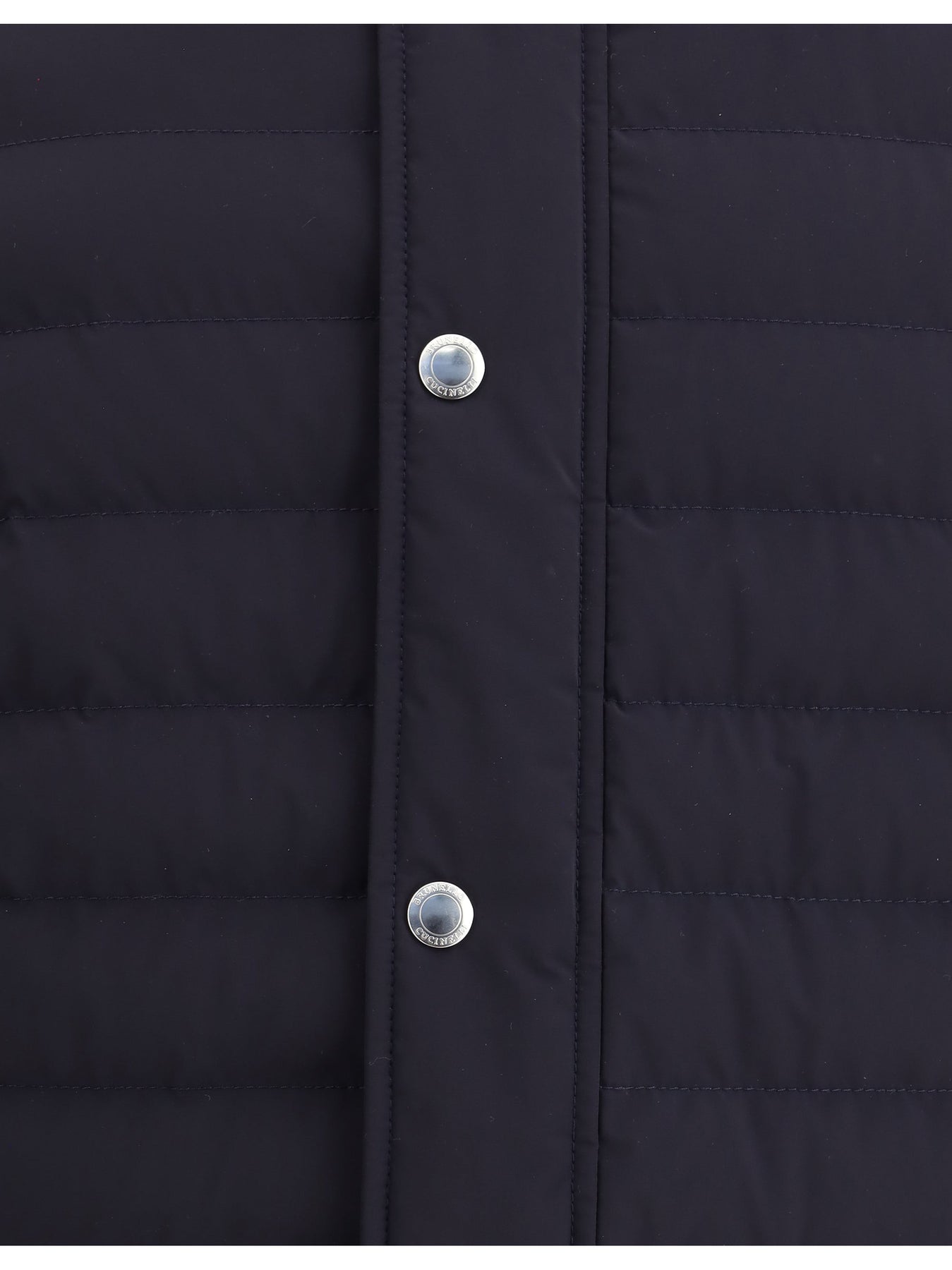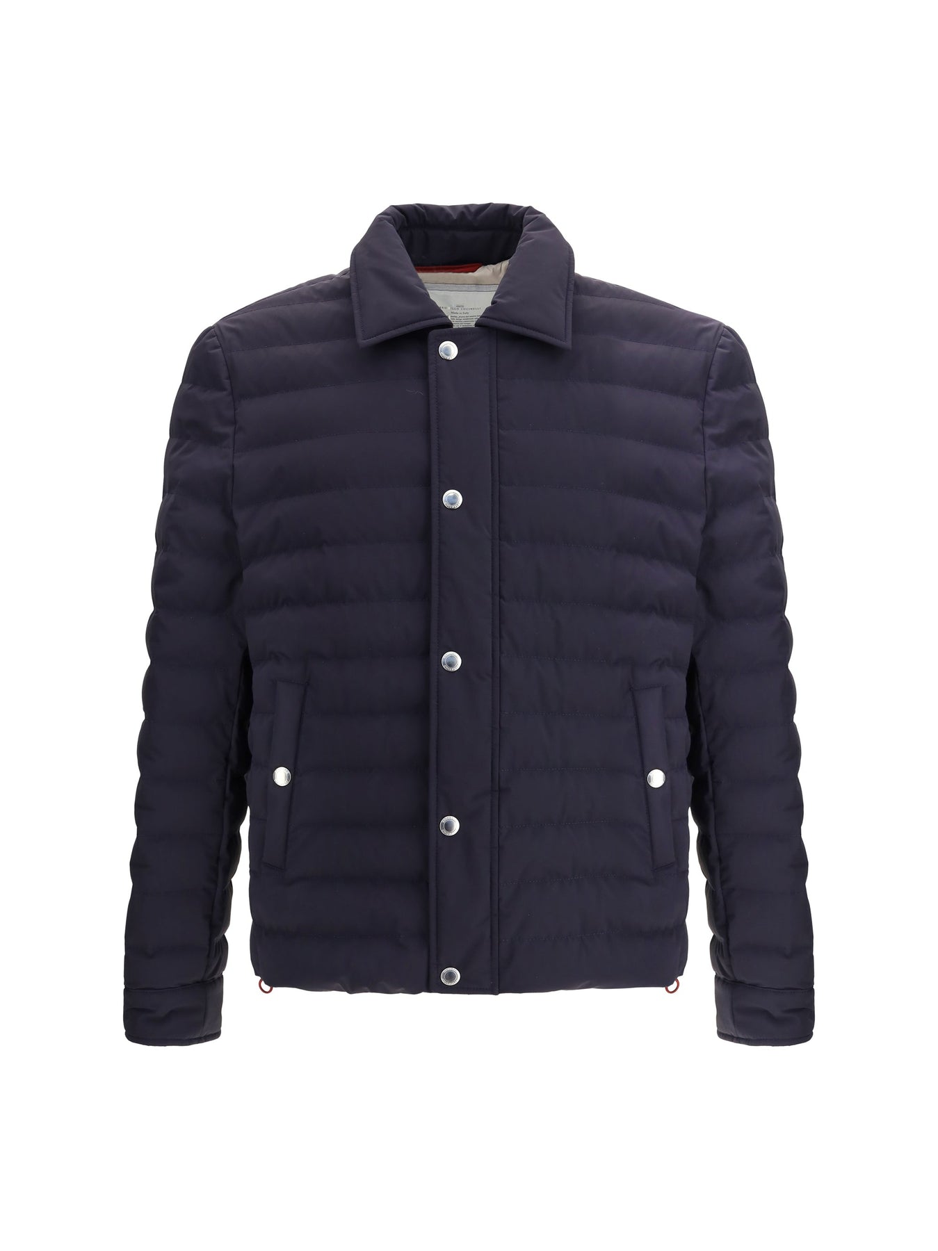Brunello Cucinelli's Down Jacket is an elegant and functional garment featuring a classic collar that adds a touch of sophistication. The front zipper and snap-button flap closure provides practicality and protection from the cold. The two side button welt pockets offer functionality without compromising style. The adjustable hem with internal drawstring allows for customization of the fit. The all-over quilted and padded design ensures warmth, while the monochrome pattern gives a clean, sophisticated look. With a regular fit, this jacket is perfect for tackling the colder seasons in style.