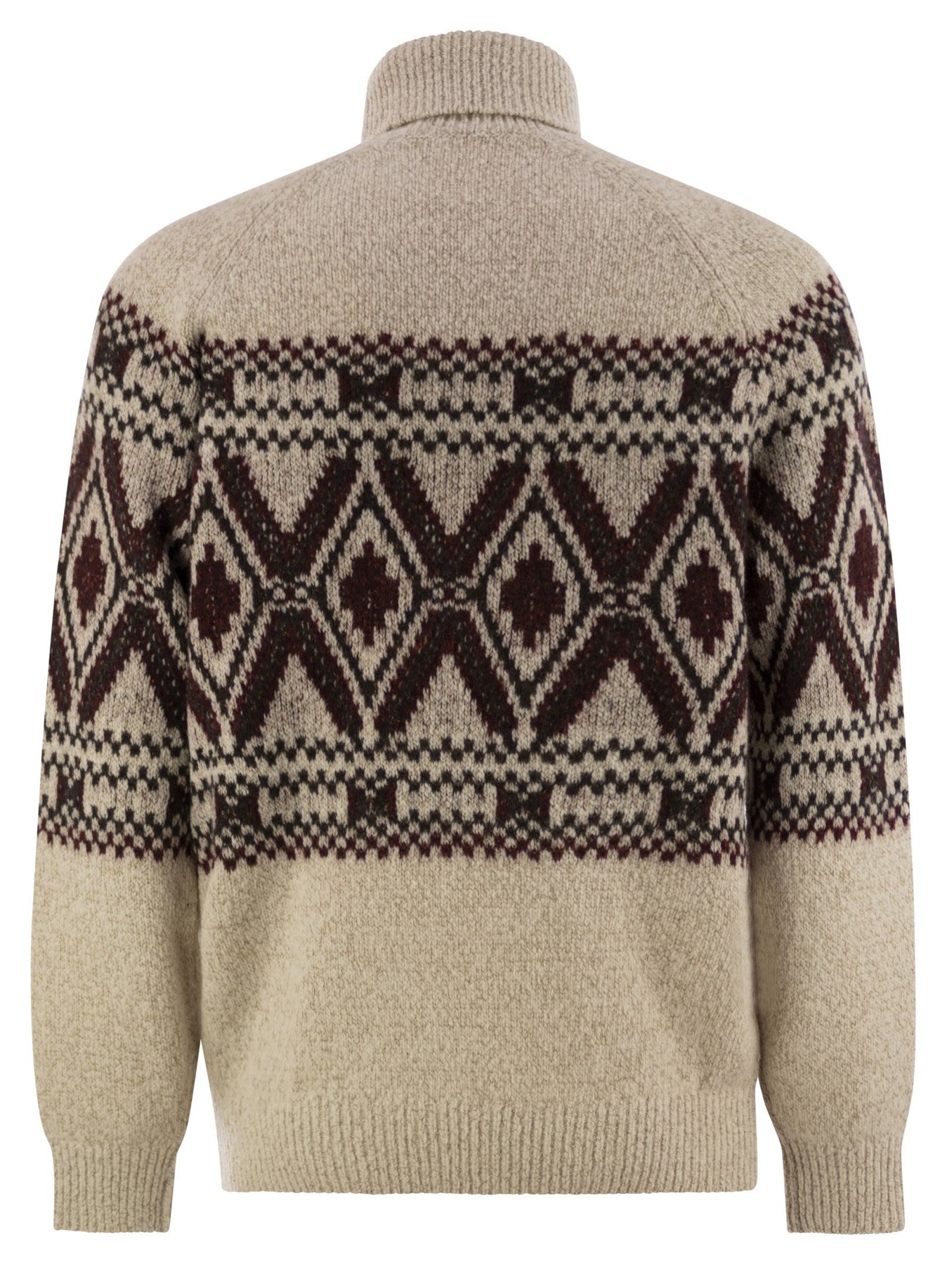 Brunello Cucinelli Men Geometric Jacquard Turtleneck Sweater In Wool, Silk And Cashmere
