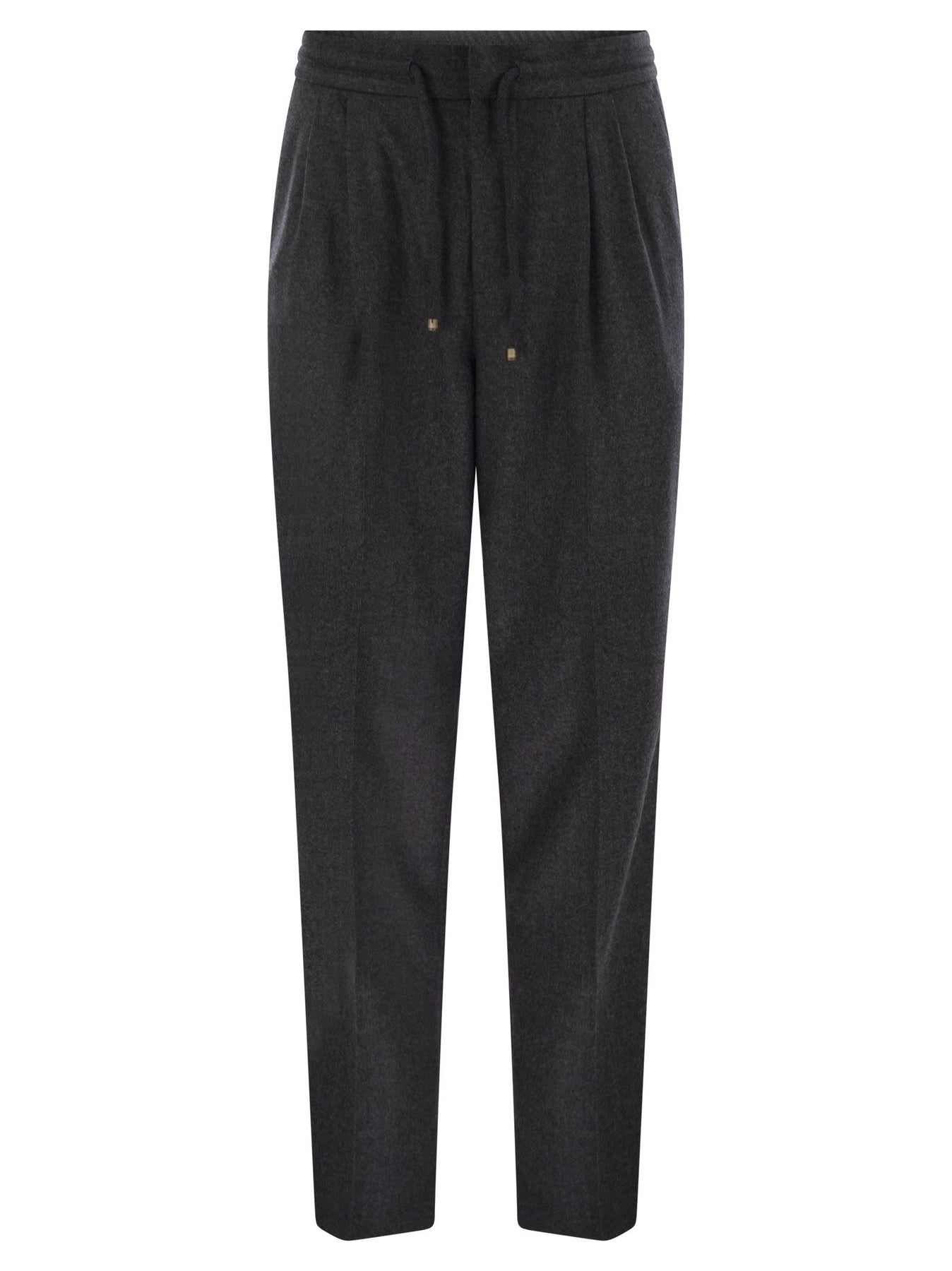 Brunello Cucinelli Men Leisure Fit Trousers In Virgin Wool Flannel With Drawstring And Double Darts