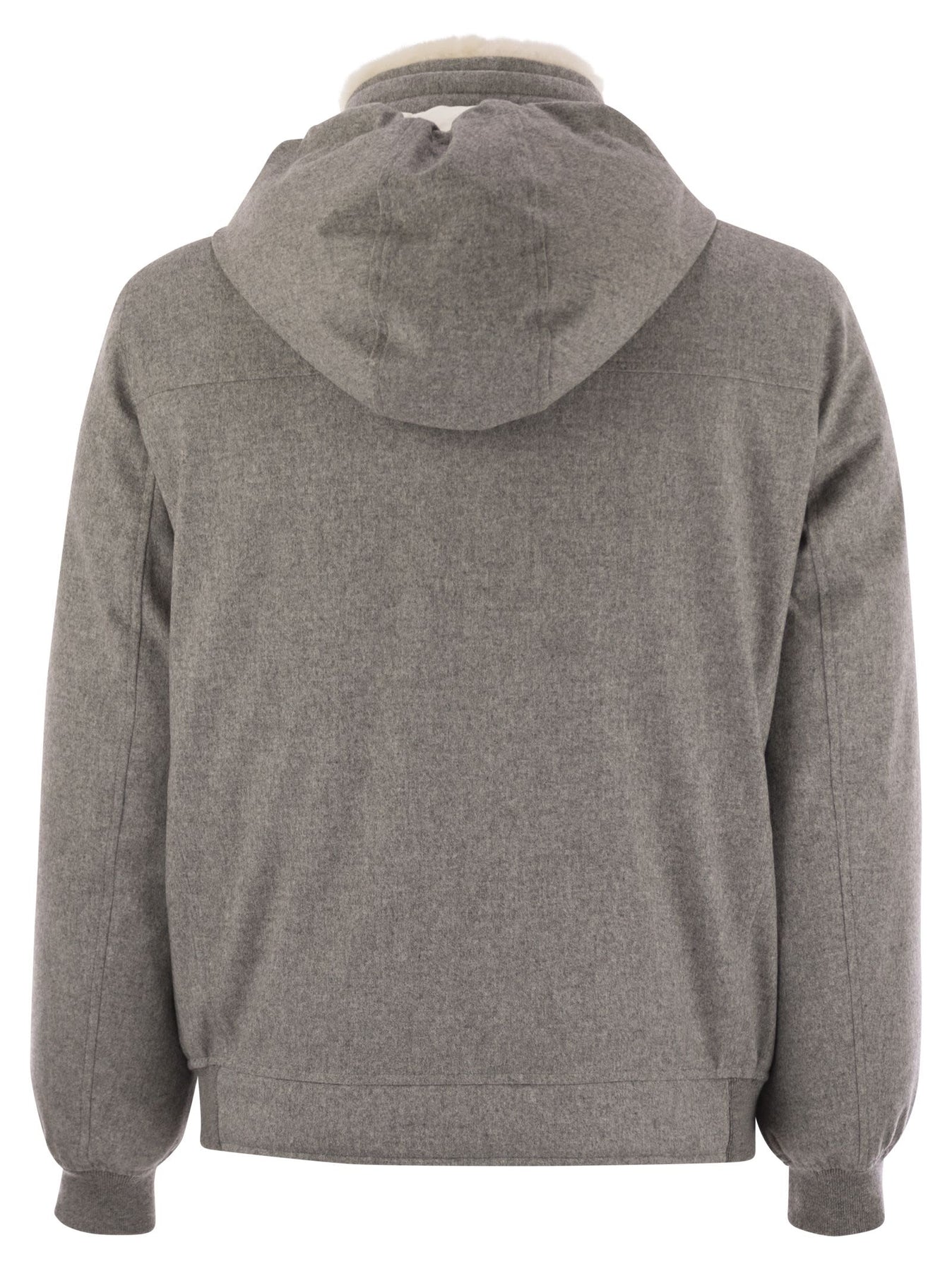 Brunello Cucinelli Men Membranated Wool Flannel Down Jacket With Shearling-Lined Collar