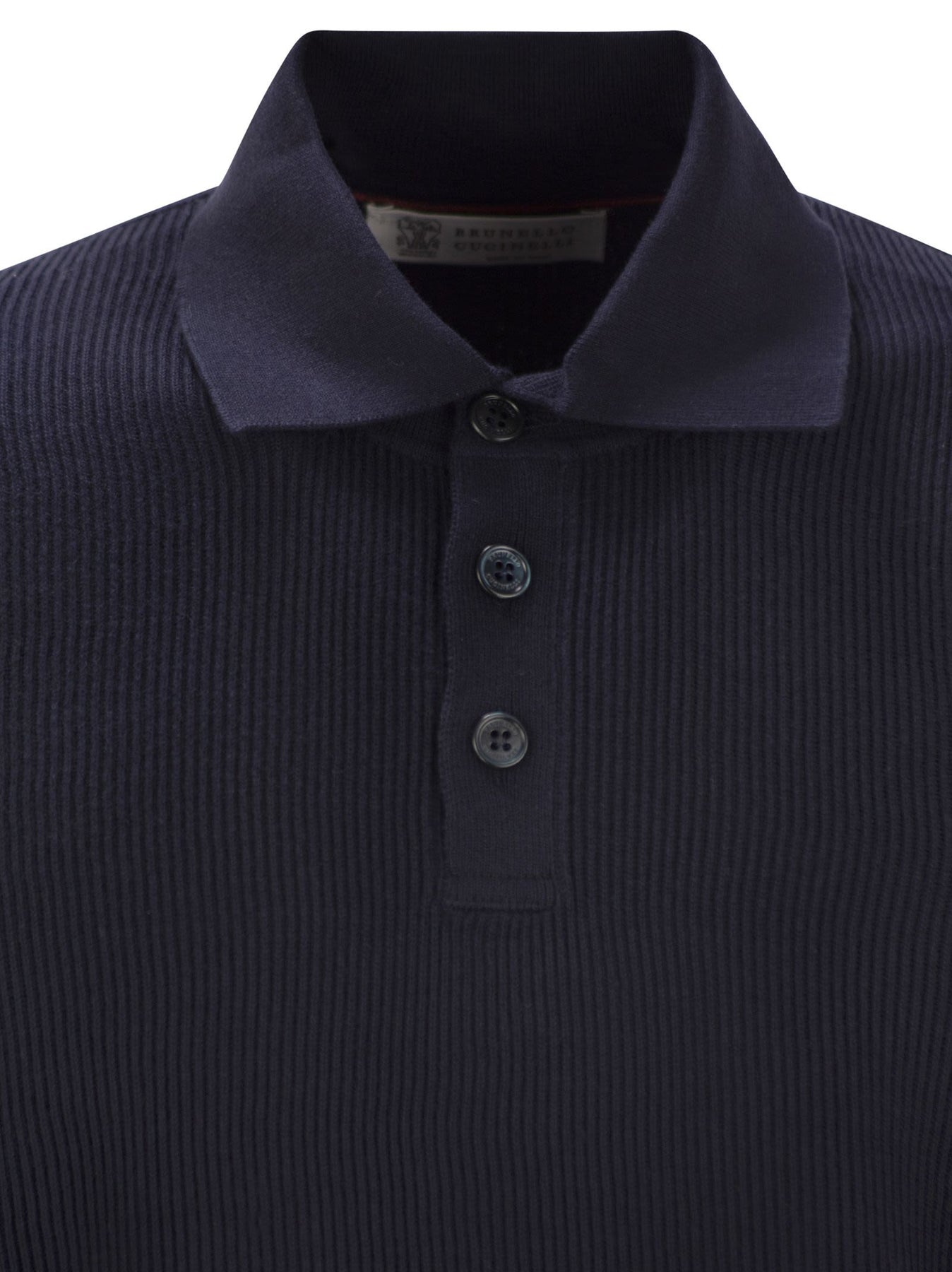 Brunello Cucinelli Men Ribbed Cotton Polo-Style Jersey