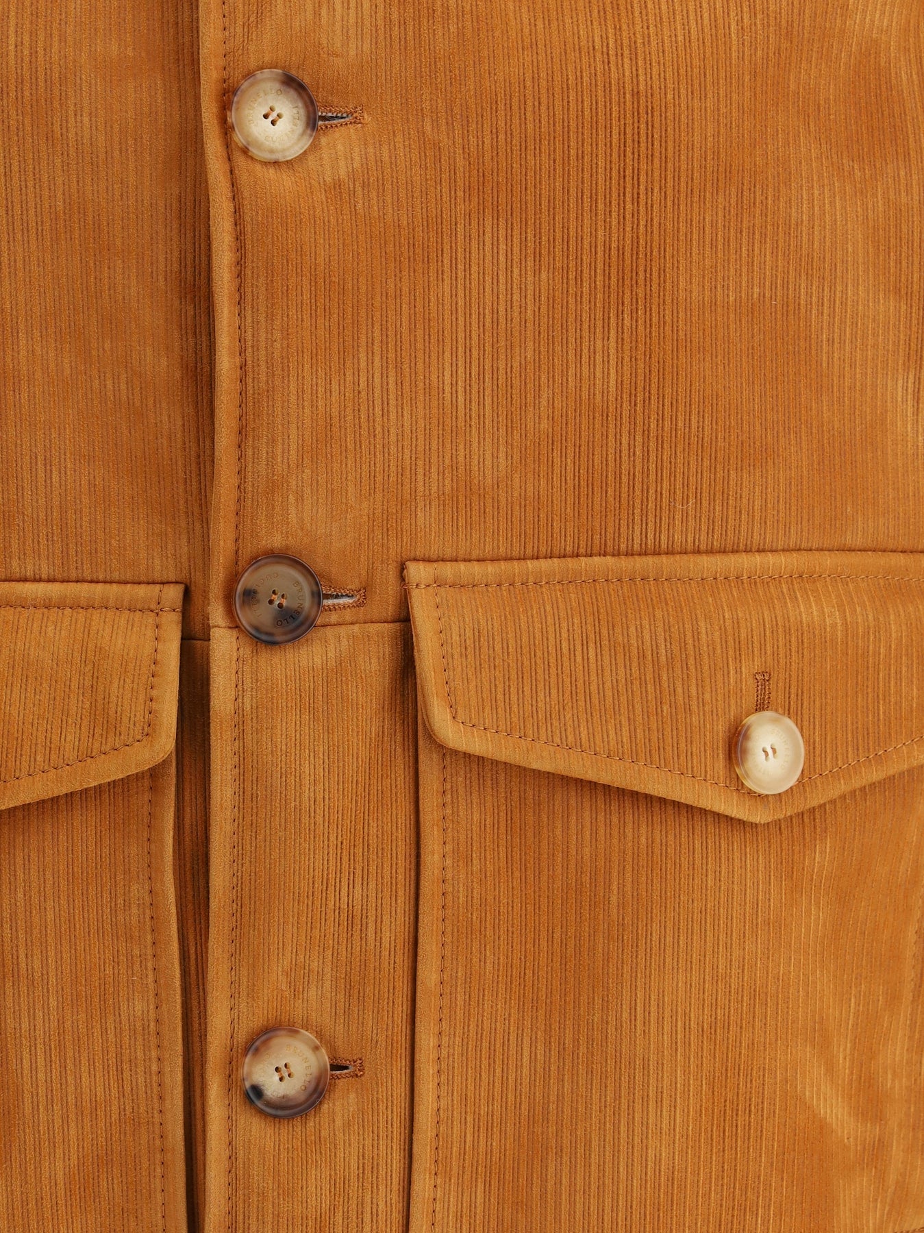 Brunello Cucinelli's shearling Jacket is a luxurious and refined garment made of suede with a shearling interior for maximum warmth and comfort. The classic collar with flap and buttons allows it to be closed and turned up, adding a touch of functional elegance. The front button closure offers practicality and style, while the two maxi patch flap pockets on the front provide ample space and a distinctive design. Ribbed cashmere cuffs and hem complete the look, adding a touch of softness and sophistication.
