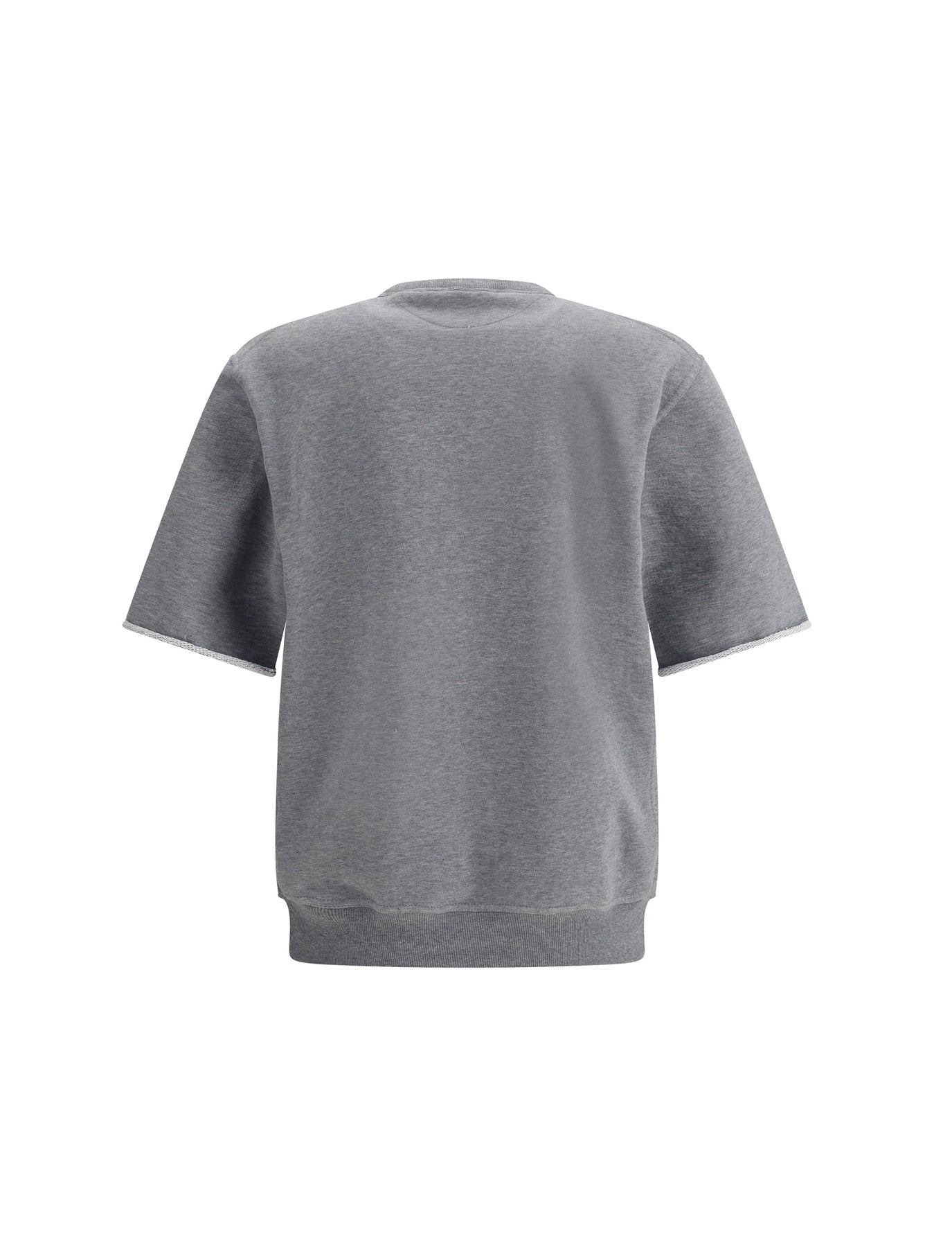 Brunello Cucinelli's Cotton Sweatshirt is a simple yet sophisticated piece, featuring a short-sleeved design and a ribbed crew neck that adds a touch of sophistication. The sleeves feature a rolled hem, while the high ribbed hem gives a clean, modern finish. The iconic contrasting monogram on the front enhances the design with a distinctive brand detail. Perfect for a casual yet stylish look, this sweatshirt combines comfort and style in a versatile garment.