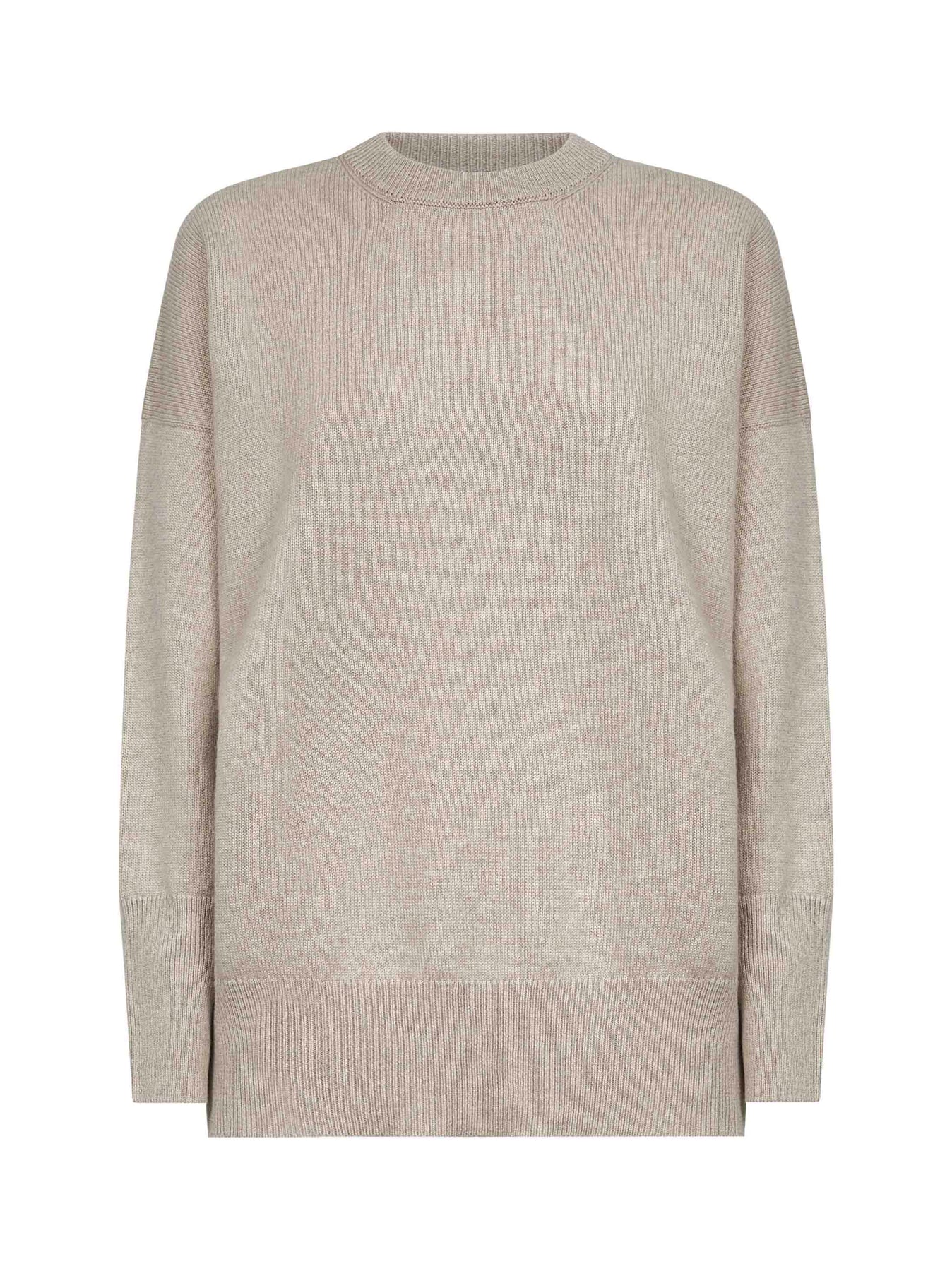 •Ribbed crewneck; nickel-free embroidered monili loop-tab at neck back •Long sleeves, dropped shoulders •Ribbed cuffs and bottom band •Plain stitch knit •Long hips-lenght cut •Relaxed fit •Beige color •100% Cashmere •Made in Italy