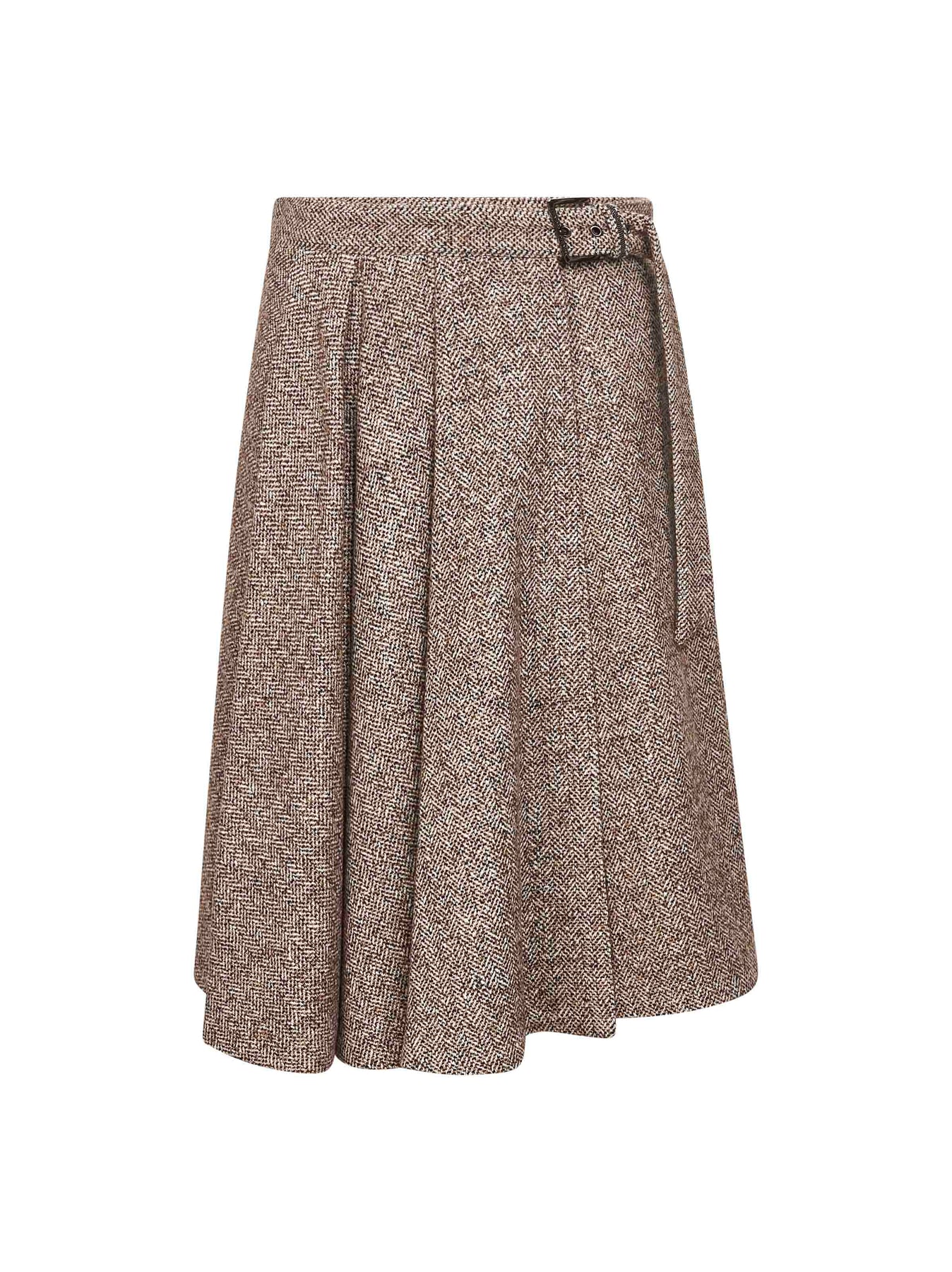 Brunello Cucinelli Women Brown Flecked Chevron Kilt Skirt With Monili