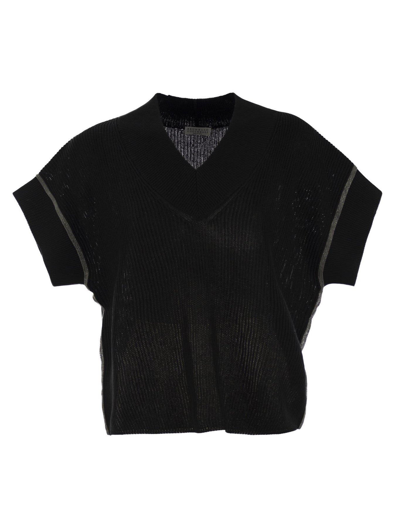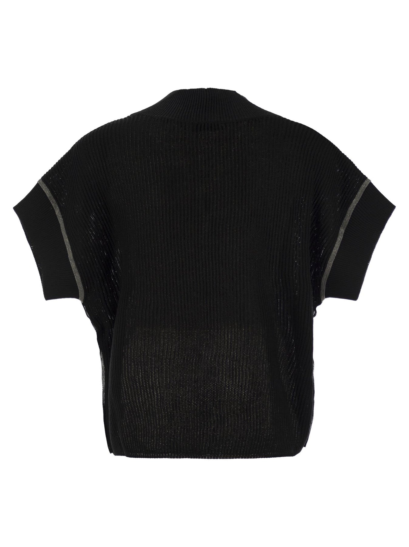 Brunello Cucinelli Women Cotton Rib Knit T-Shirt With Precious Trims