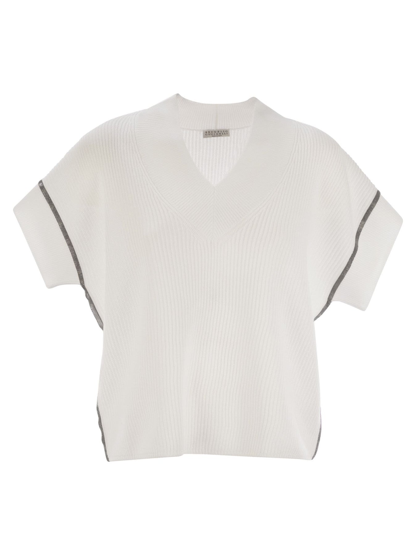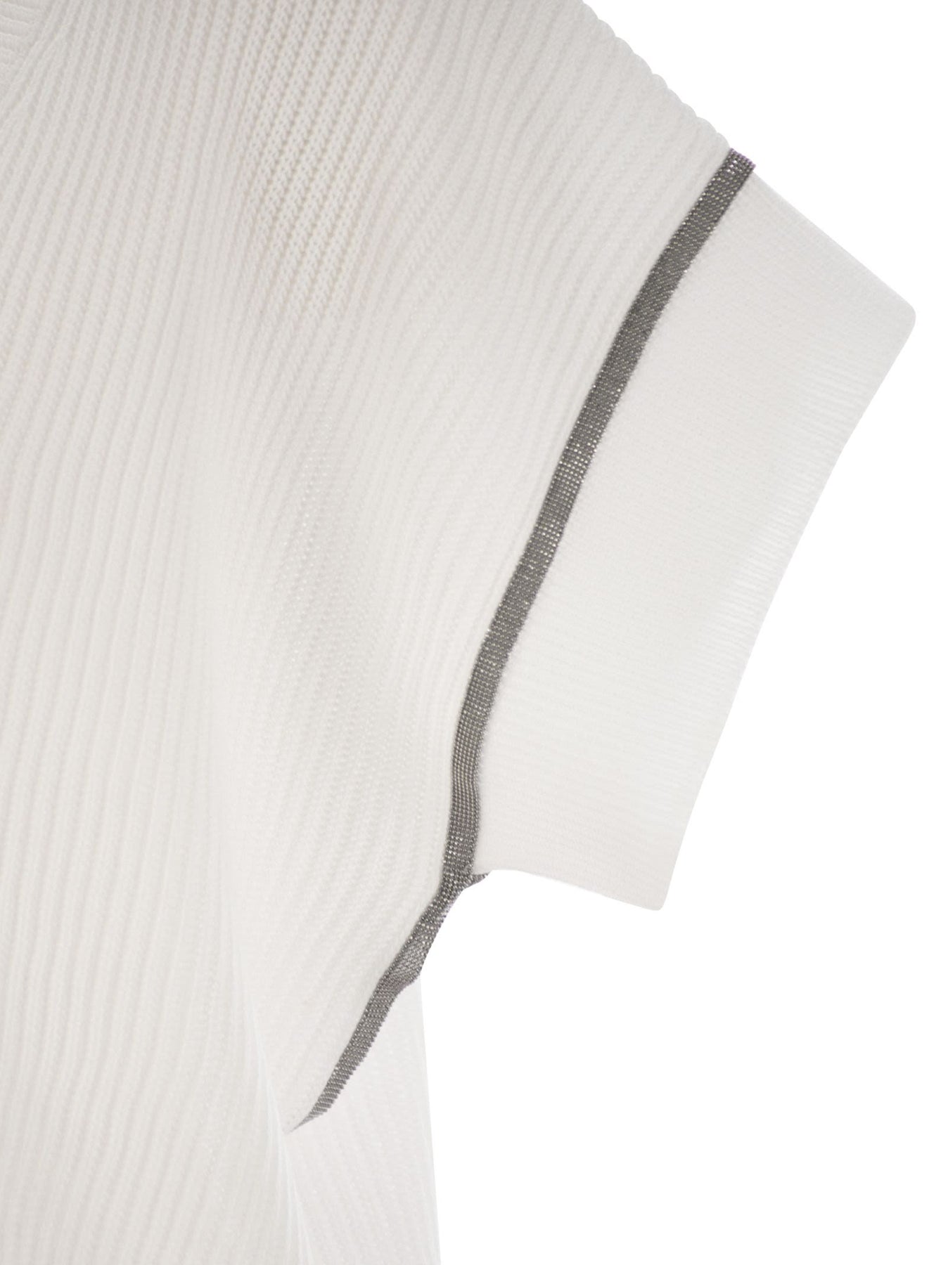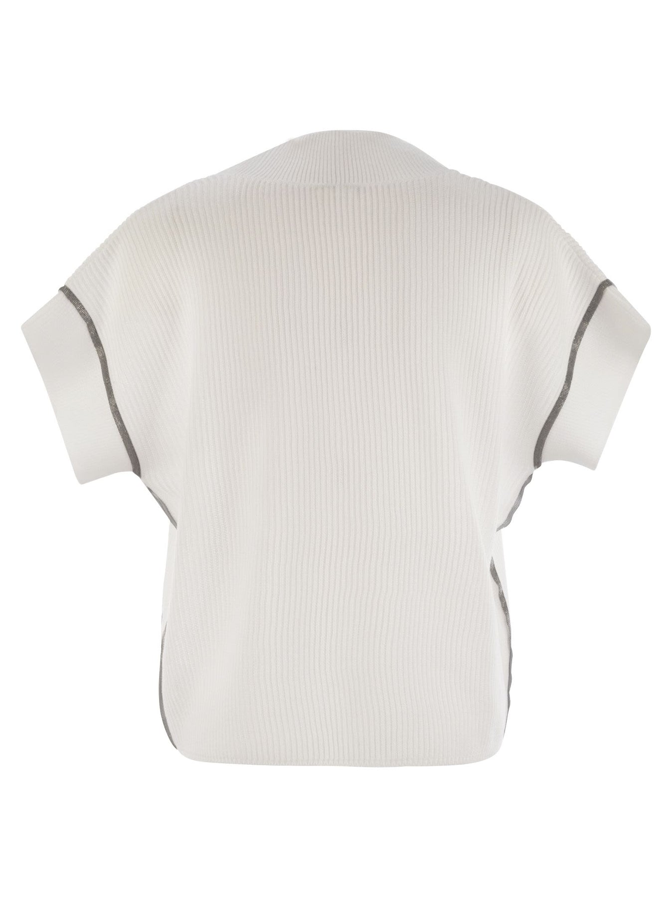 Brunello Cucinelli Women Cotton Rib Knit T-Shirt With Precious Trims