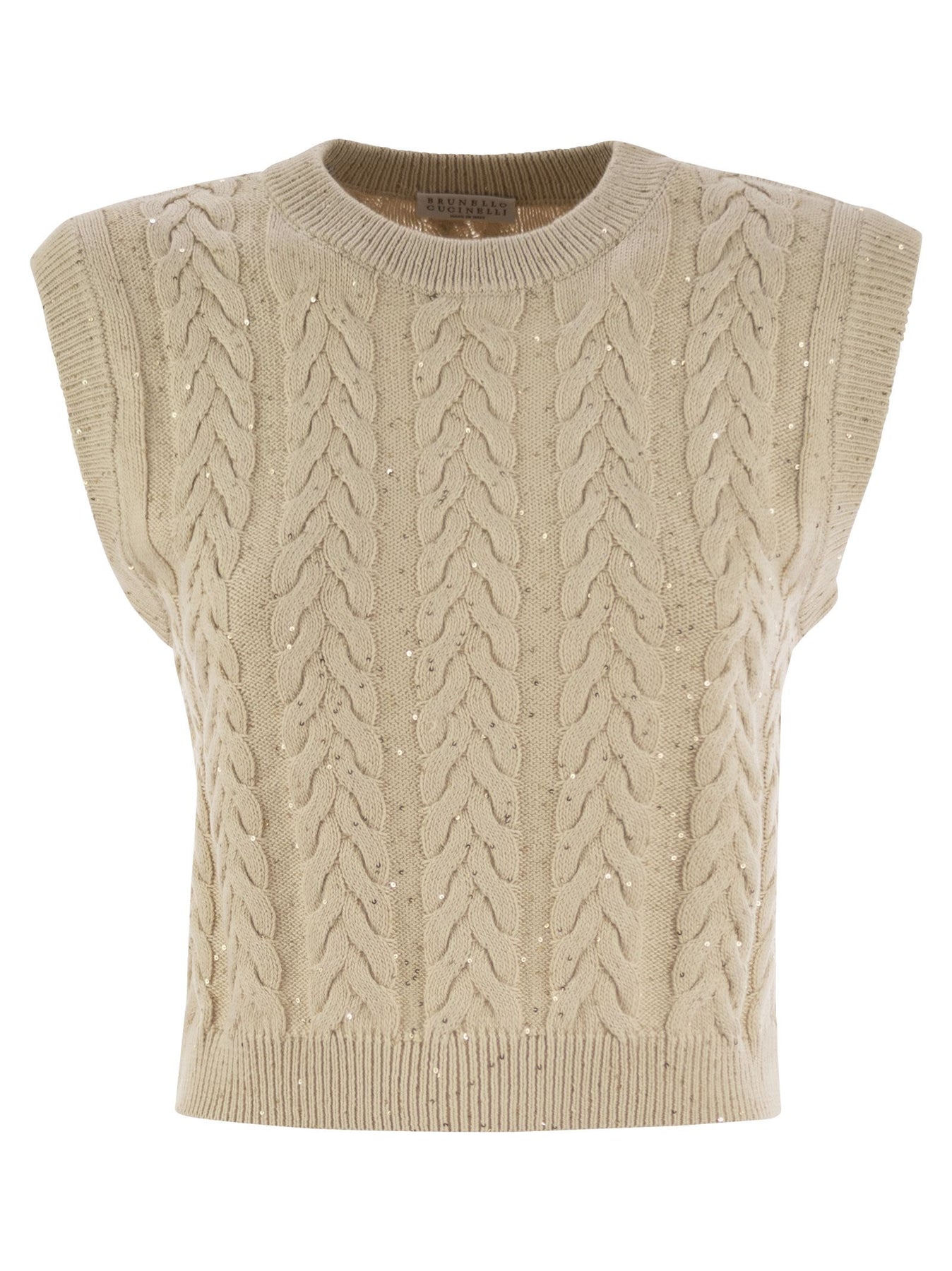 Brunello Cucinelli Women Dazzling Double Cable Knitted Cotton Waistcoat