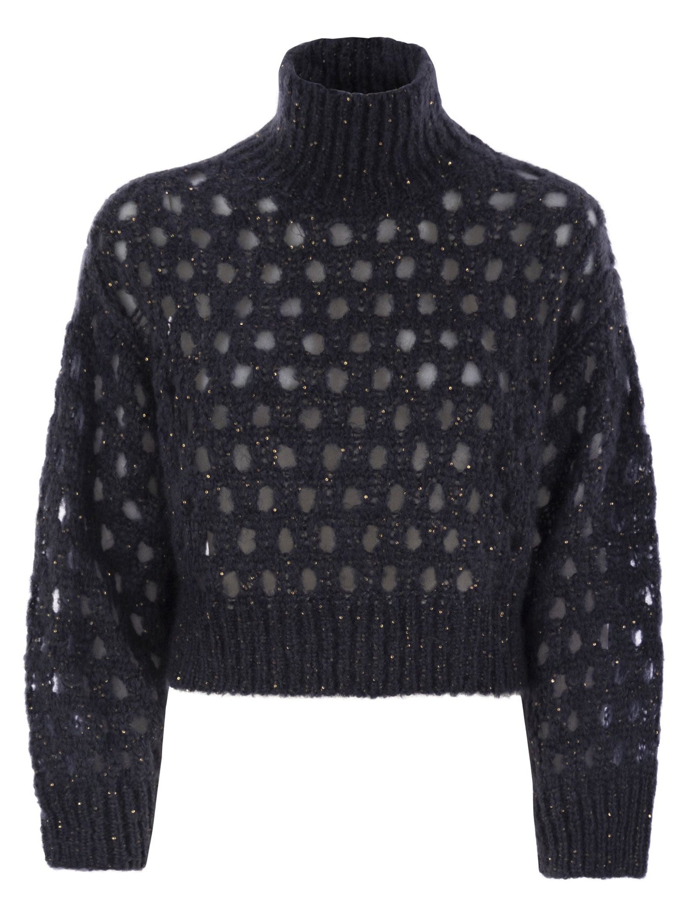 Brunello Cucinelli Women Dazzling Net Turtleneck Sweater Made Of Mohair And Wool Wispy