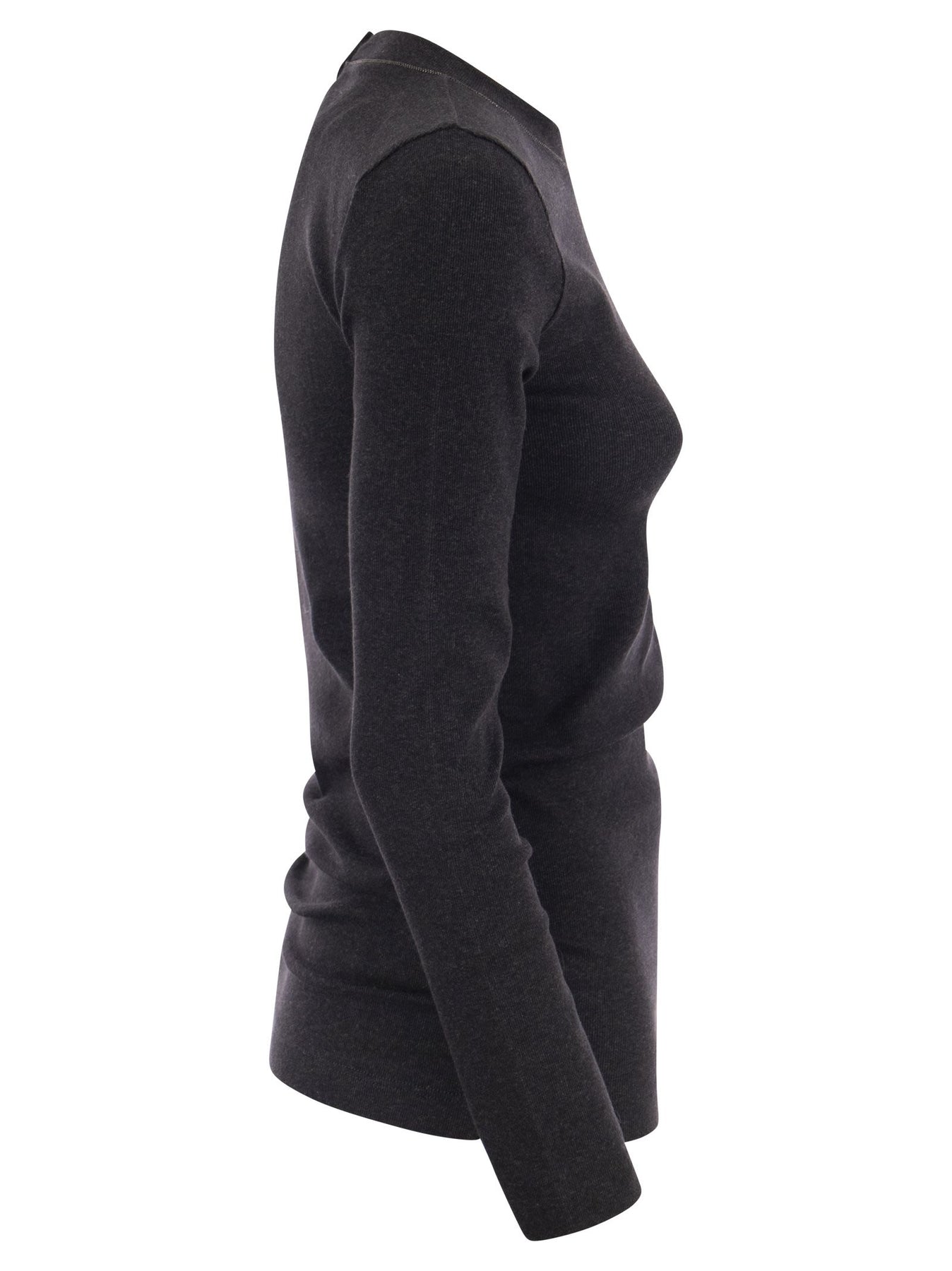 Brunello Cucinelli Women Ribbed Stretch Cotton Jersey T-Shirt With Jewellery