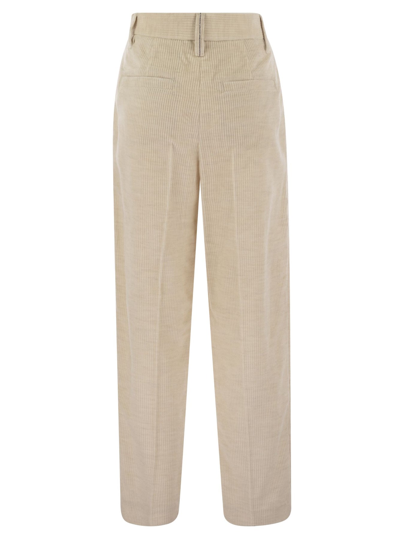 Brunello Cucinelli Women Striped Canvas Trousers In Viscose And Comfort Cotton With Necklace