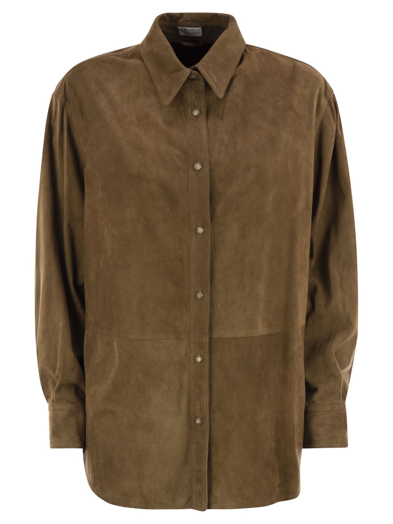 Brunello Cucinelli Women Suede Shirt With Jewellery