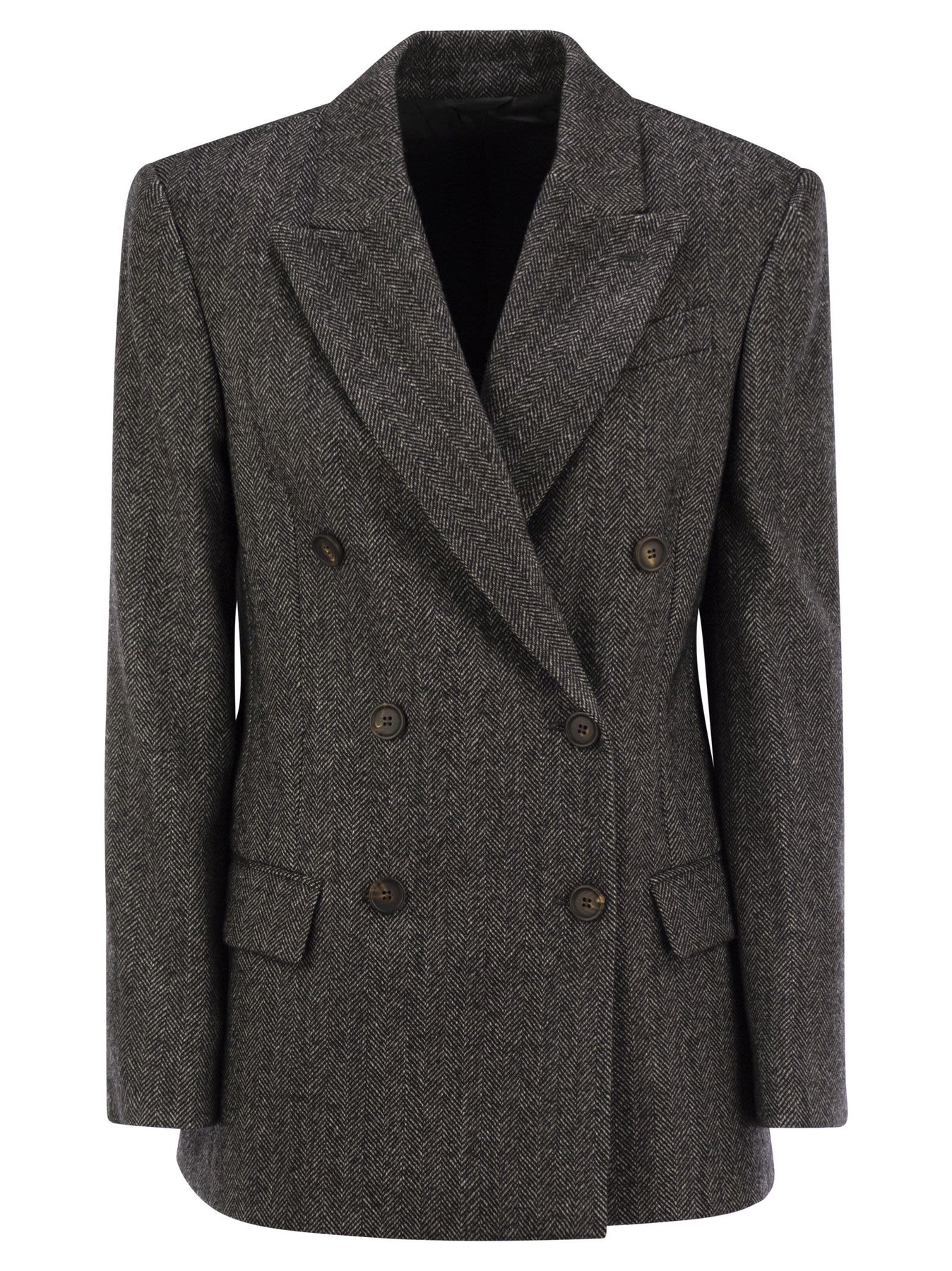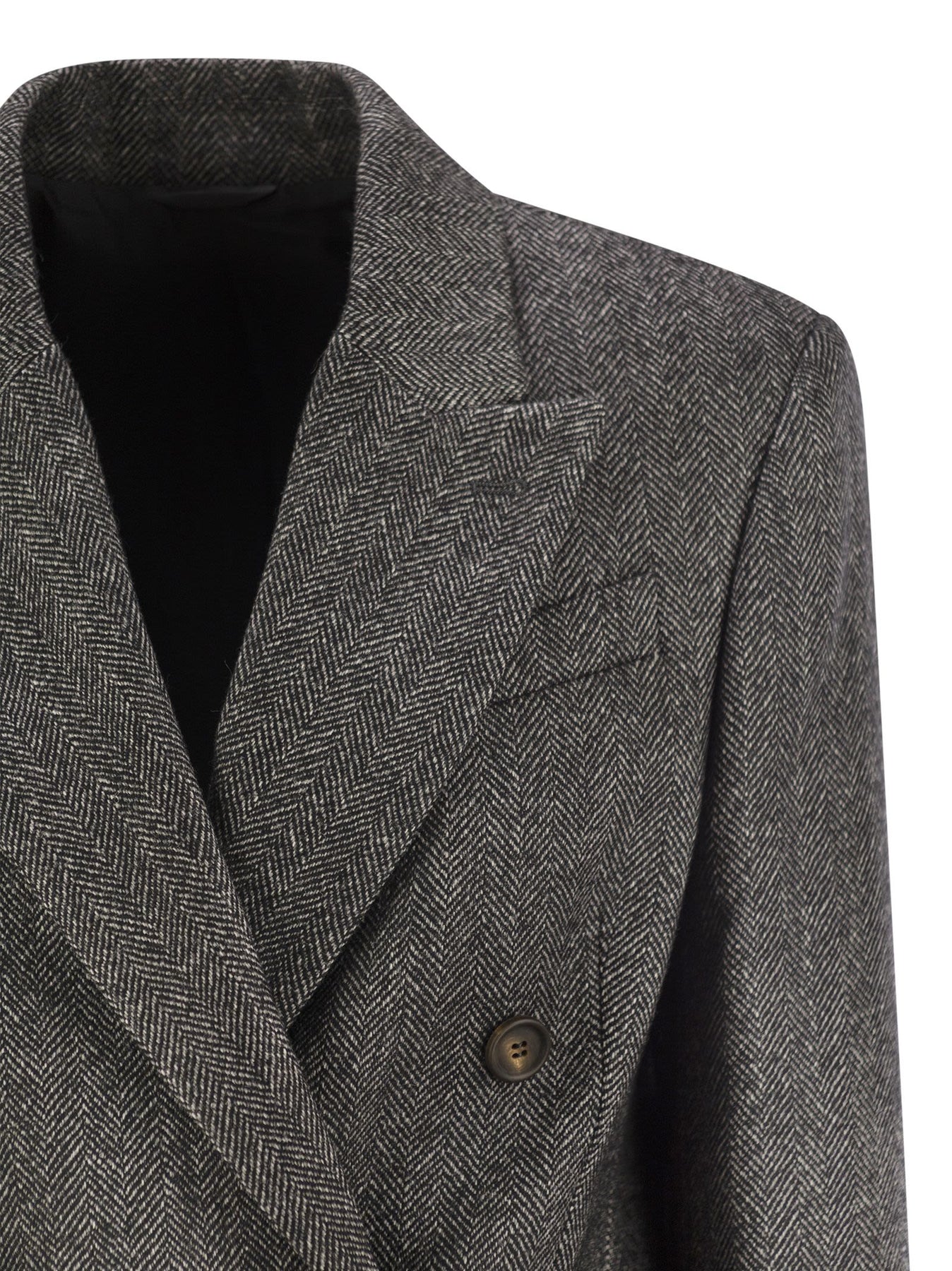 Brunello Cucinelli Women Techno Wool Carded Chevron Jacket With Monile