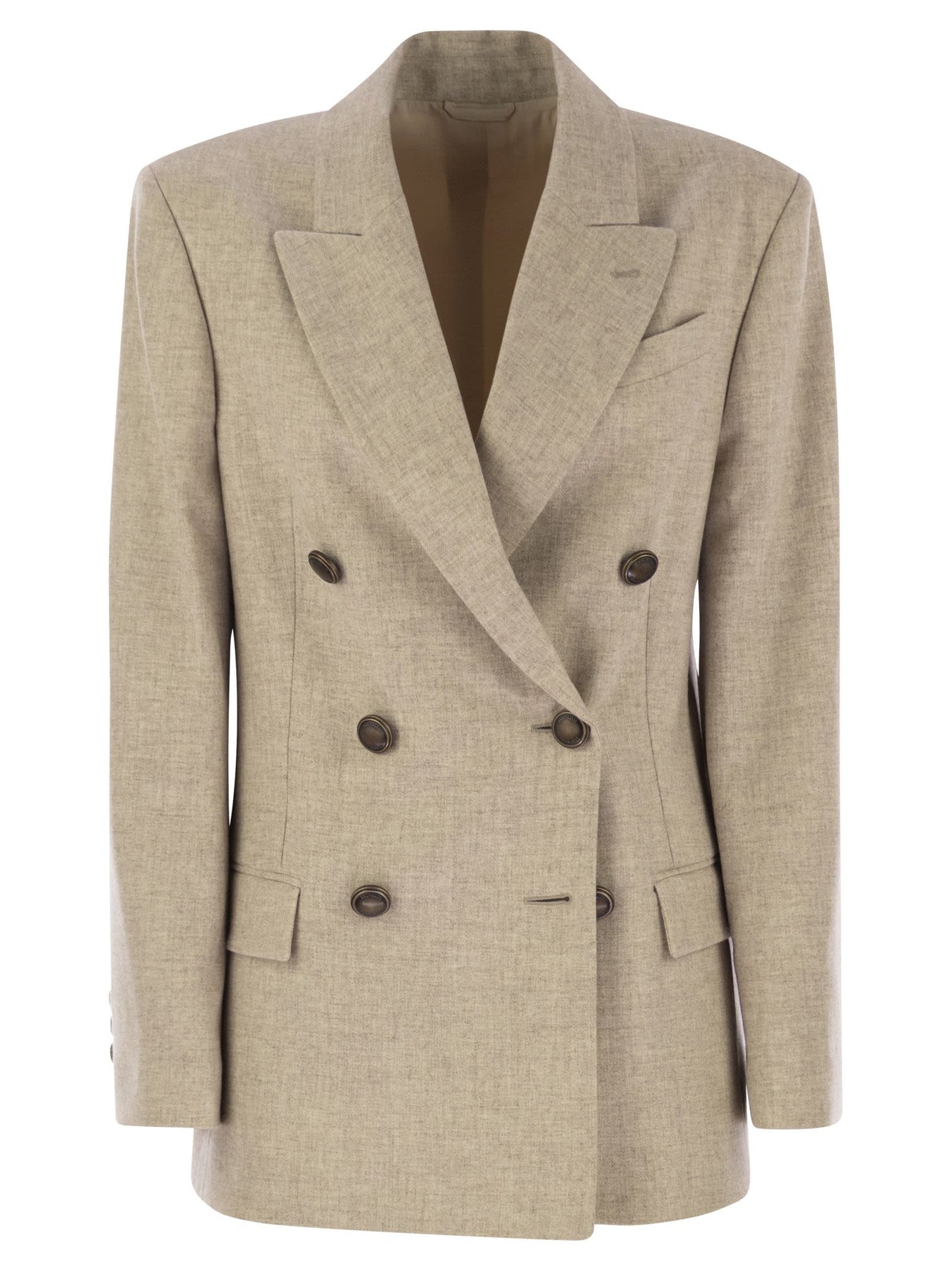 Brunello Cucinelli Women Virgin Wool And Cashmere Twill Flannel Jacket With Monili