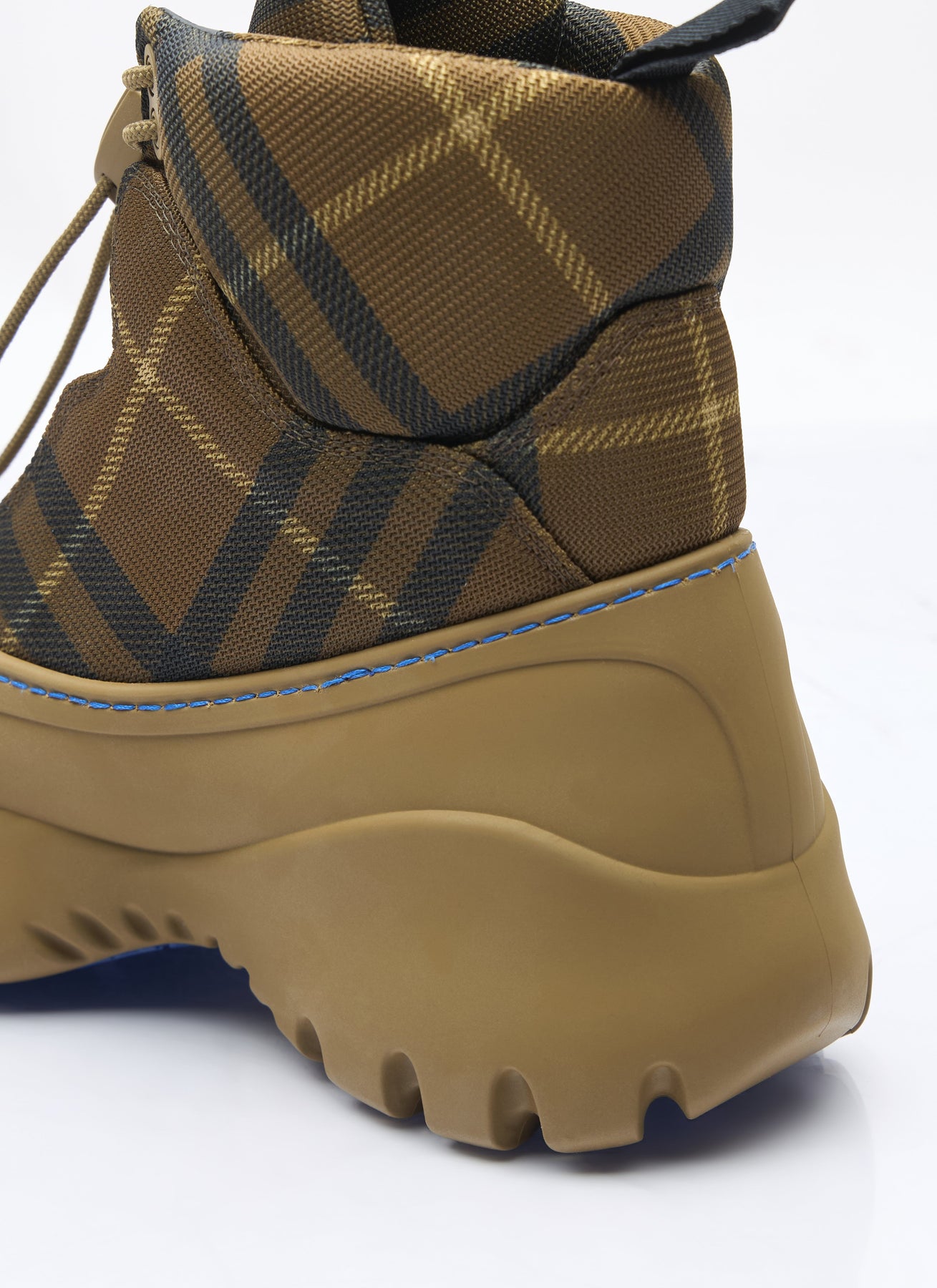 Scoot trek boots in woven Check upper with rubber overshoe.