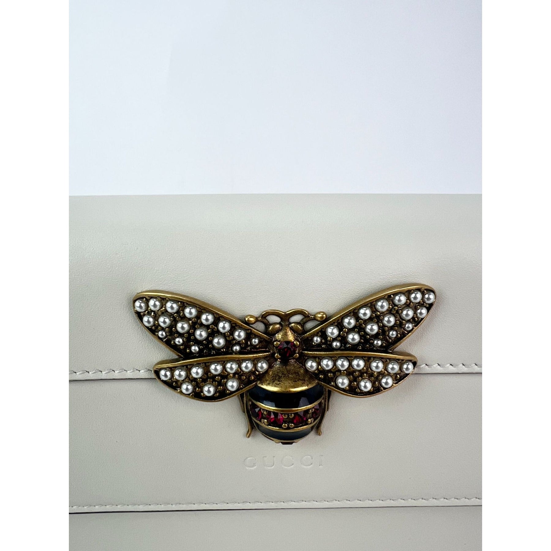 Gucci Queen Margaret Bee Wallet on a Chain Mystic White Clutch >
