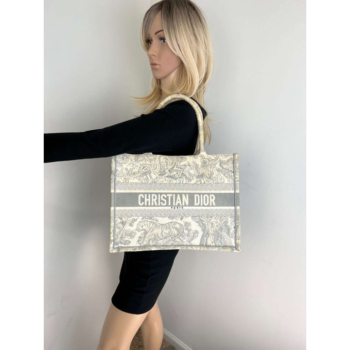 CHRISTIAN DIOR Medium Book Tote Ecru and Grey