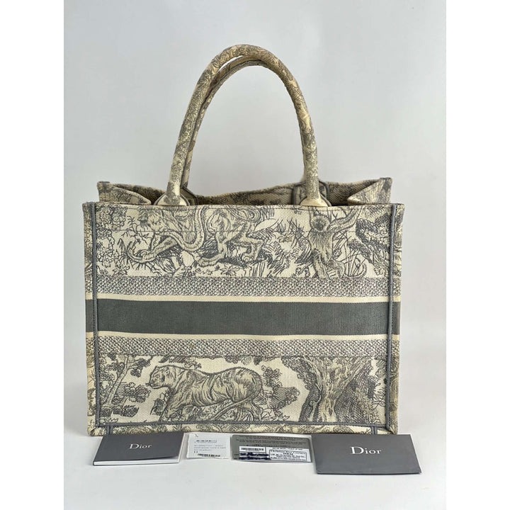 CHRISTIAN DIOR Medium Dior Book Gray Embroidery Tote