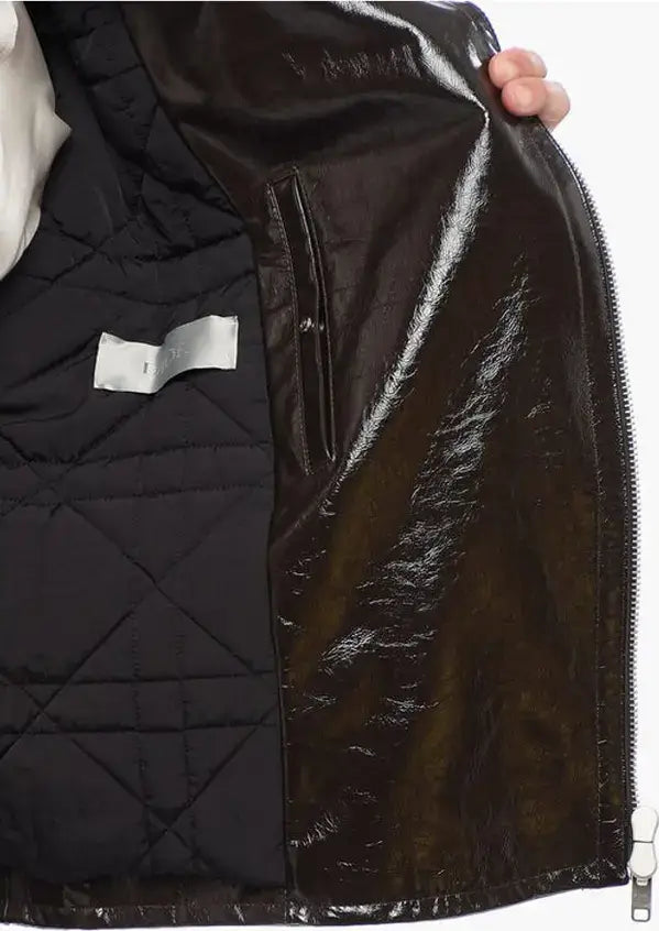 DIOR men's brown Craquelé Leather Jacket with Side Zip