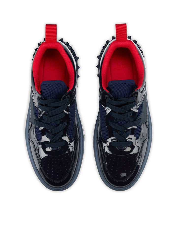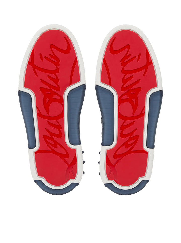 -In sapphire blue lambskin nappa and PVC -A tab on the heel -Iconic Maison Christian Louboutin studs on the heel counter -Two-tone sole finished with the iconic CL monogram Made in Portugal Composition: Polyurethane 100% Polyurethane Thermoplastic Color code: 4320 ZAFFIRO