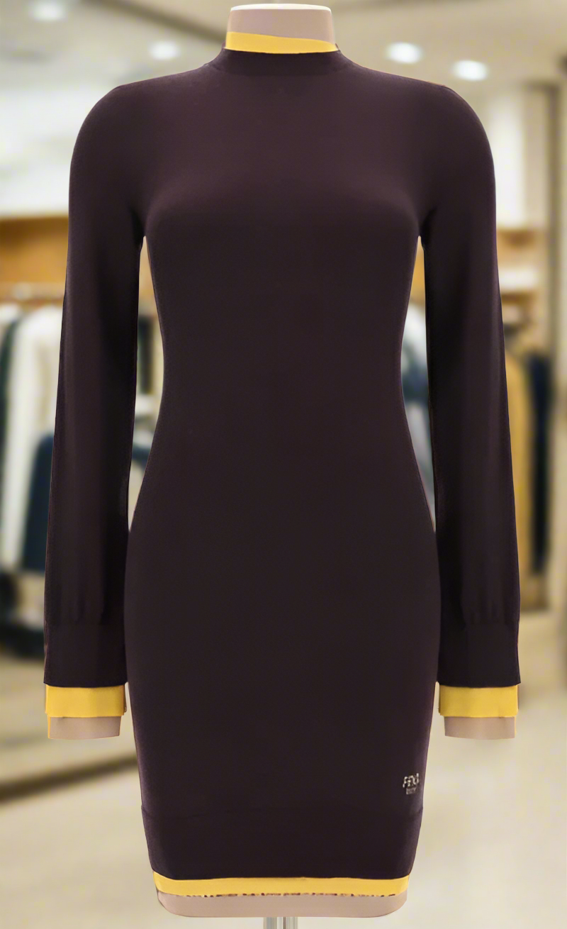 This Wool Mini Dress by Fendi is the perfect addition to your wardrobe. With its long-sleeved design and multi-layer ribbed details on the collar, cuffs, and trompe-l’oeil effect hem, this dress exudes elegance and sophistication. The contrasting iconic brand monogram on the front adds a touch of luxury to the slim fit silhouette. But what sets this dress apart is its fast delivery. You won't have to wait long to receive this stunning piece, making it the perfect choice for any last-minute events or special occasions. Don't miss out on this must-have dress from Fendi.