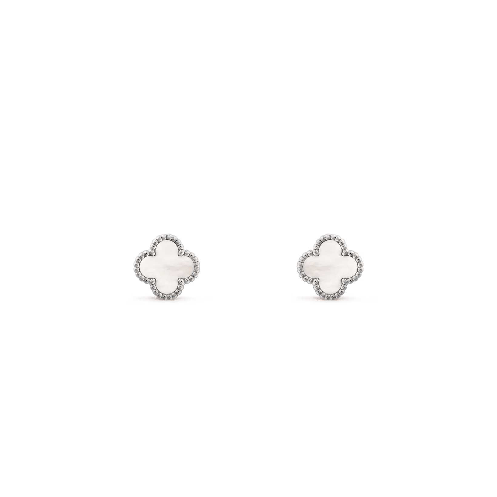 Van Cleef & Arpels Sweet Alhambra earstuds 18K white gold, Mother-of-pearl in fine jewelry design. >