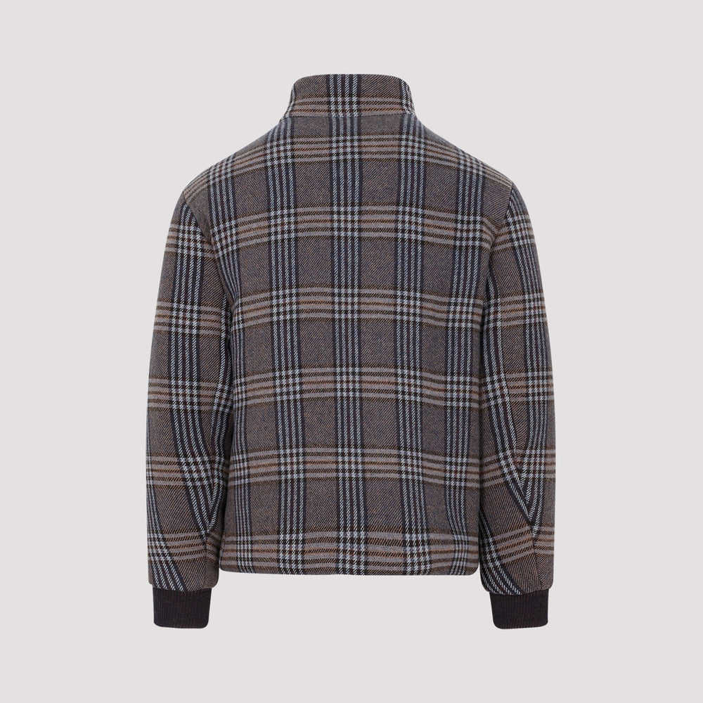 Etro Blue Virgin Wool Padded Jacket. Crafted in blue virgin wool, checkered, standing collar, double zip fastening on front, vertical welt pockets on front, tonal logo embroidered on the breast, elasticated ribbed cuffs, lined. Wool | 48%VIRGIN WOOL 41%WOOL 9%CASHERE 2%POLYAMIDE 100%POLYESTER