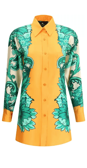 Silk Shirt by Etro, an elegant and sophisticated garment. It features a classic collar and front button closure, while the multicolored floral pattern adds a lively and refined touch. Adjustable button cuffs offer a comfortable fit, while the back features a refined knot detail with two slits, giving the garment movement and originality. Complemented by an applique welt pocket on the front, this shirt is ideal for those looking for a unique and sophisticated style.