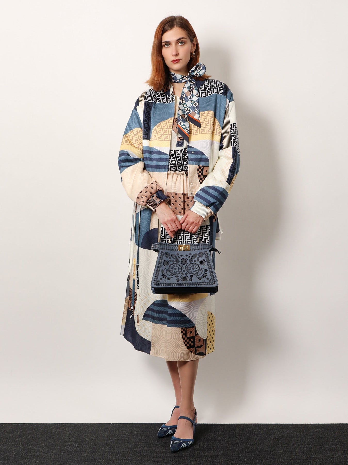 Fendi Women Peekaboo Iseeu Small Leather Shoulder Bag With Laser-Cut Coral Bandana Motif