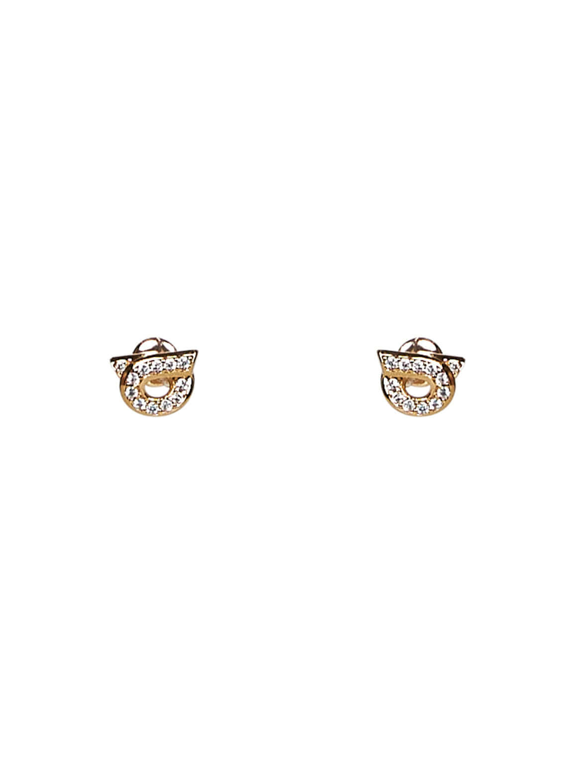 Ferragamo Women Gold Gancini Earrings With Rhinestones - Size 10