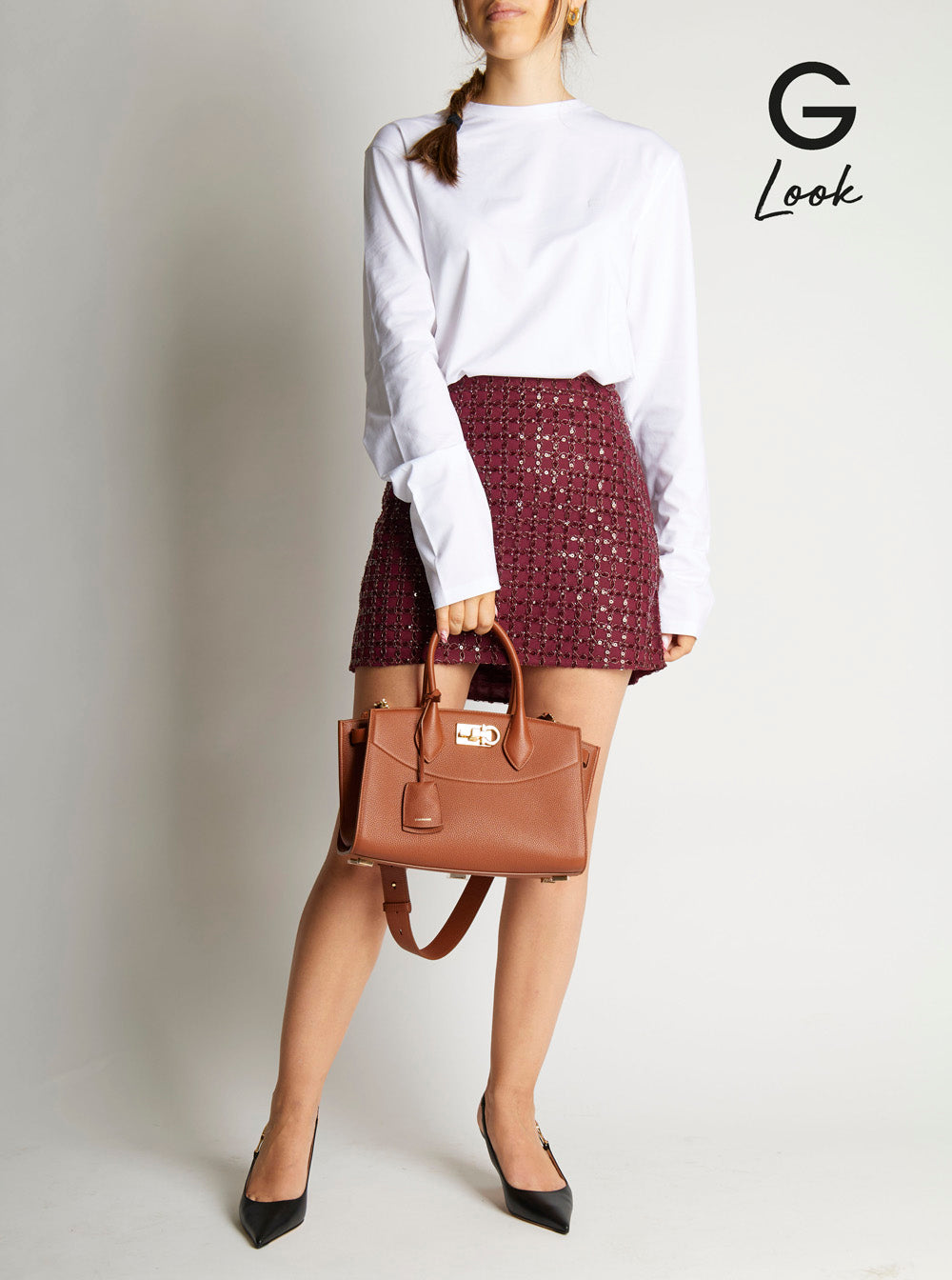 Handbag Brown Two top handles Adjustable and removable shoulder strap Front turn-lock closure Removable logo tag on the front Gold tone metalware Leather Dimensions: 28x18,5x12,5 cm Handle drop: 11 cm Strap drop: 37 cm