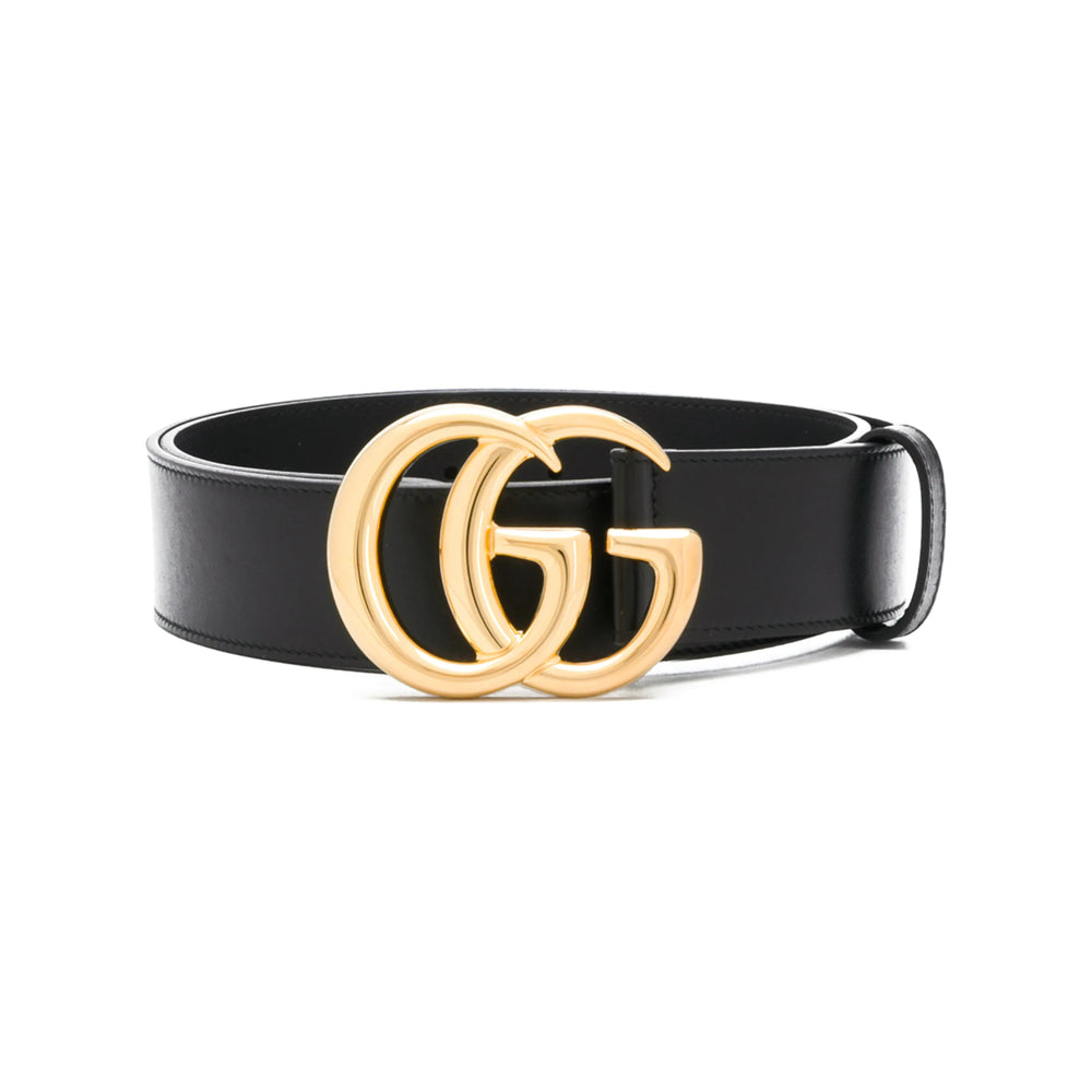black/gold leather gold-tone buckle fastening perforated design belt loops