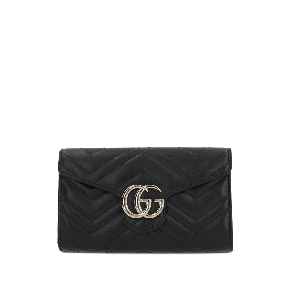 black quilted-chevron leather snap-button closure removable chain-strap Double G hardware