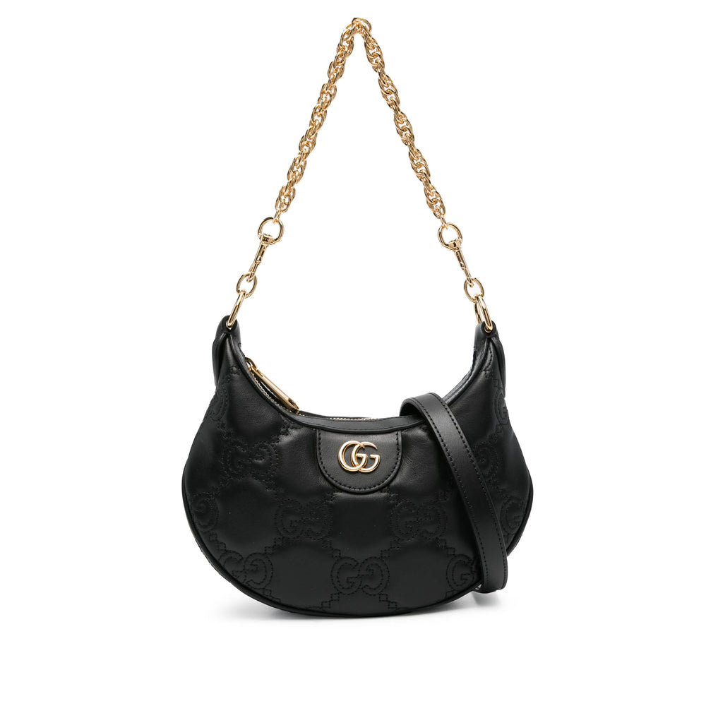 black leather matelassé effect GG Supreme canvas adjustable detachable shoulder strap main compartment internal patch pocket canvas lining gold-tone hardware top zip fastening This piece comes complete with a protective dust bag.