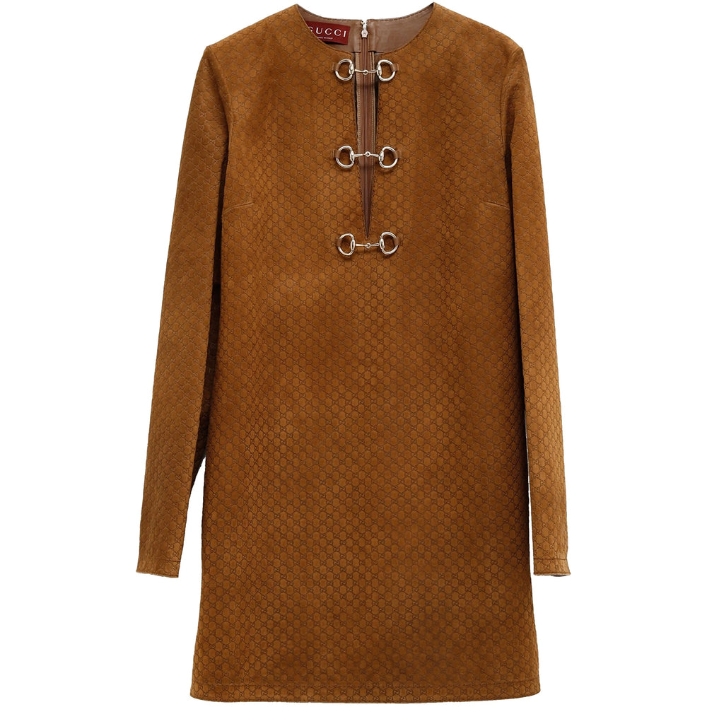 camel brown rear zip fastening plunging V-neck signature Horsebit detail long sleeves