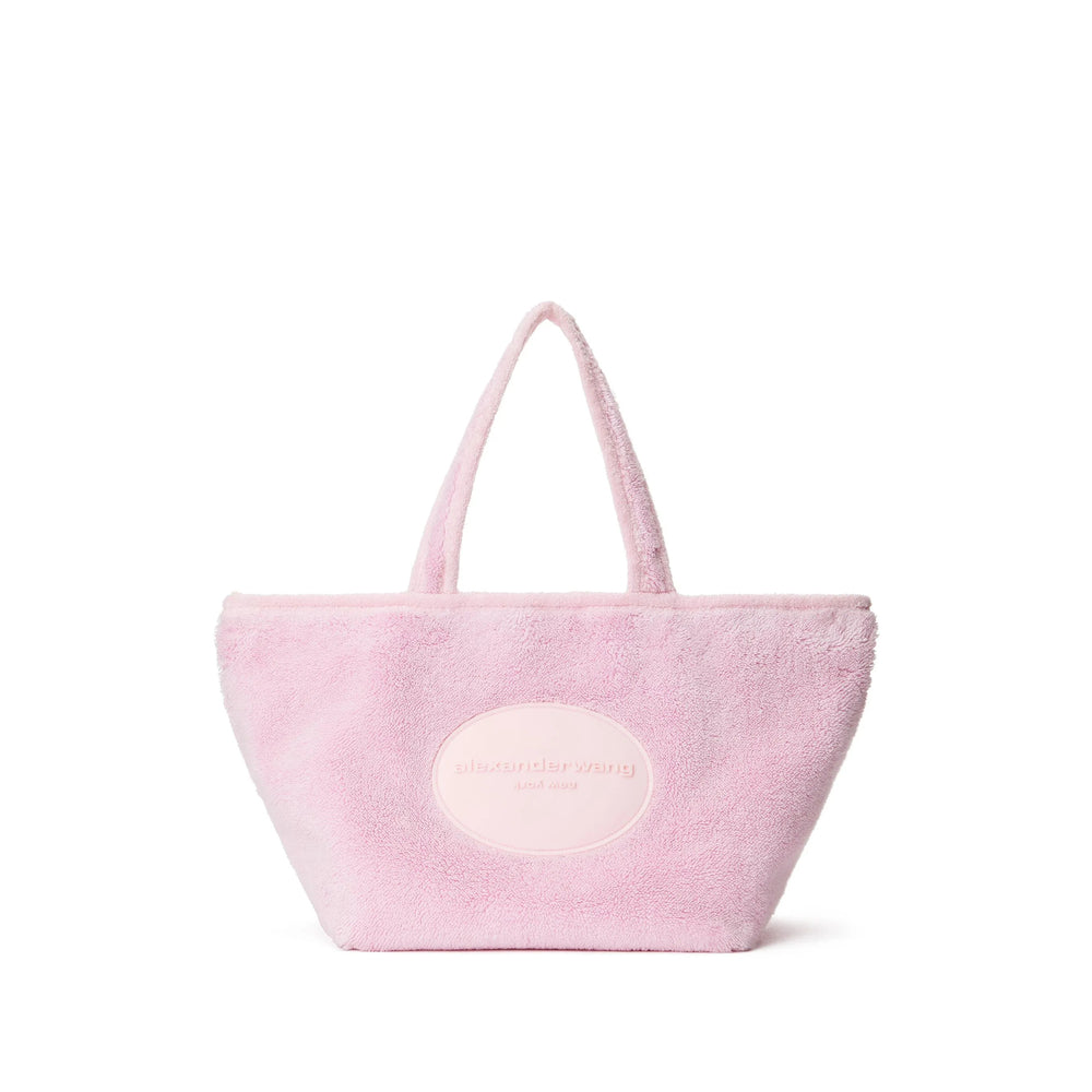 light pink embossed logo to the front internal zip-fastening pocket internal logo patch open top two top handles
