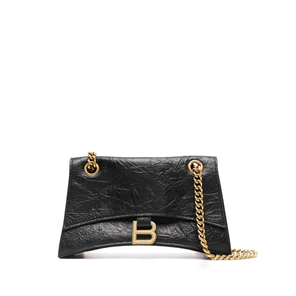 black calf leather textured finish chain-link shoulder strap logo plaque at the front partitioned compartment internal zip-fastening pocket internal logo stamp gold-tone hardware foldover top with magnetic fastening This piece comes complete with a protective dust bag.