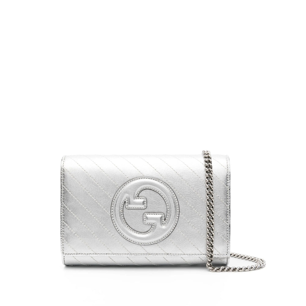 silver-tone leather metallic effect signature Interlocking G logo detachable chain-link shoulder strap partitioned compartment internal zip-fastening pocket multiple internal slip pockets foldover top with press-stud fastening