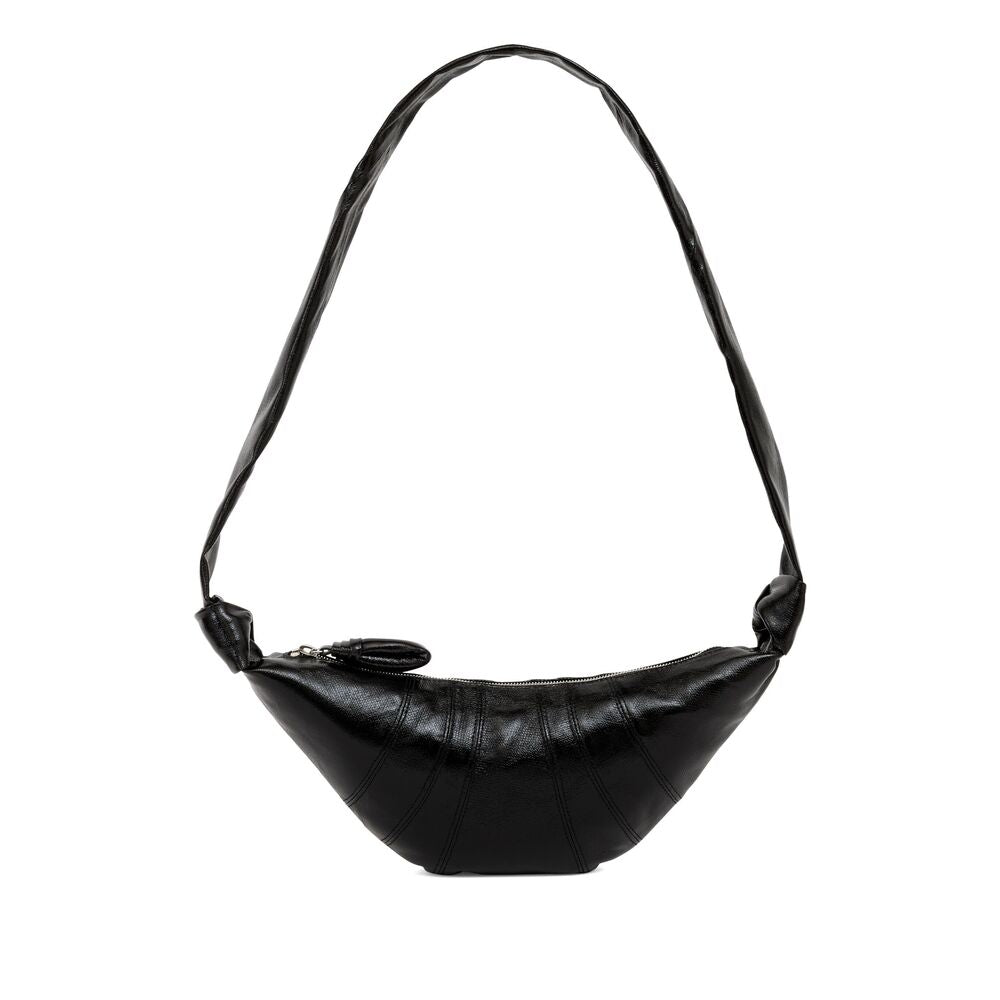 black cotton blend coated finish knot detailing single shoulder strap top zip fastening main compartment internal patch pocket internal logo patch cotton lining