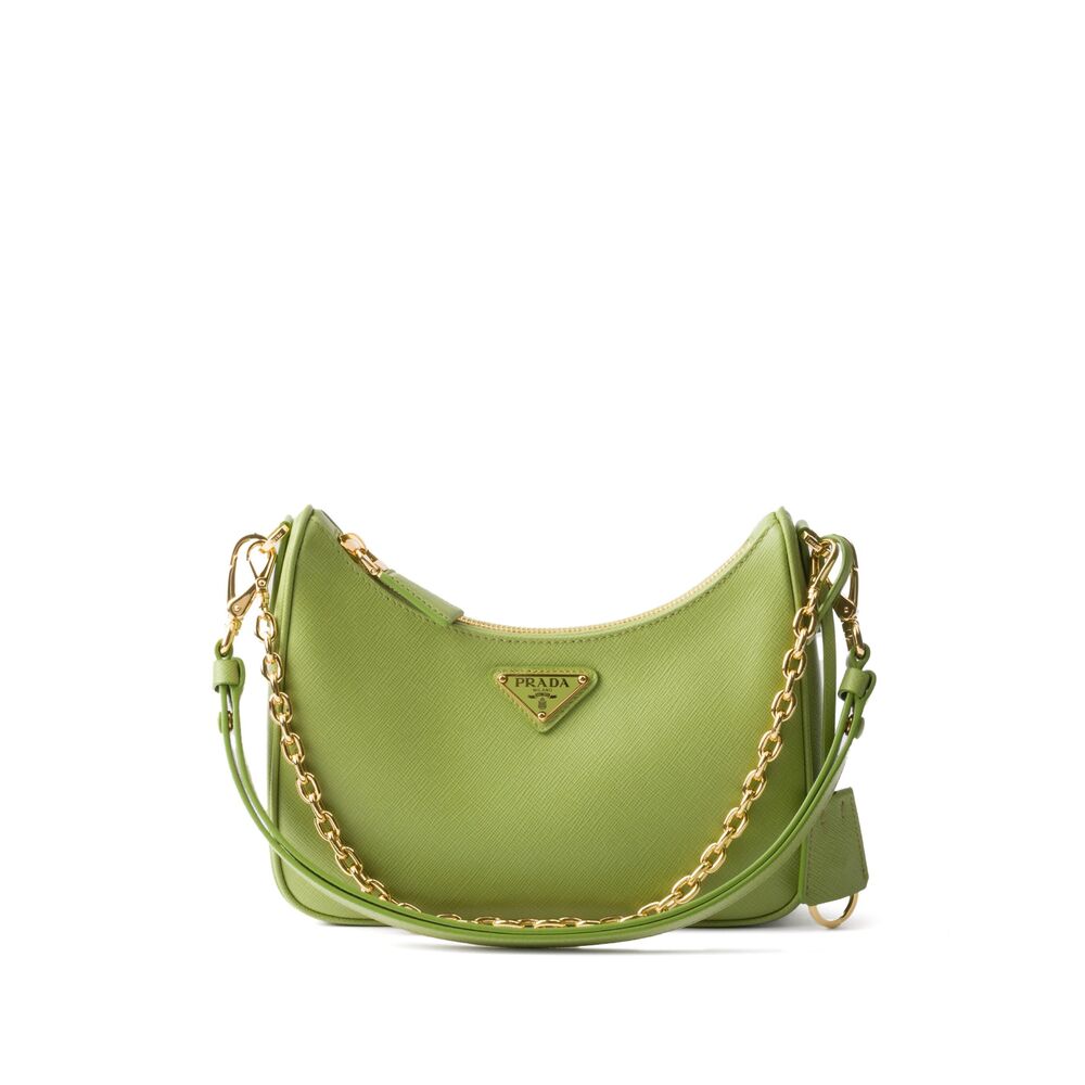 bright green top zip fastening single chain-link top handle adjustable detachable shoulder strap enamel triangle logo