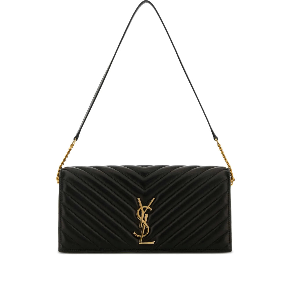 black lambskin adjustable detachable shoulder strap chain-link shoulder strap gold-tone logo plaque foldover top with magnetic fastening internal zip pocket internal logo patch