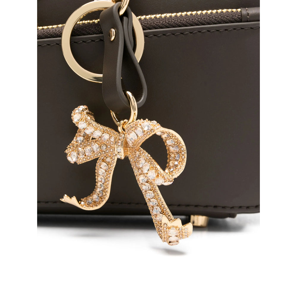 brown two top handles zip fastening crystal-embellished bow detail two zip-fastening pockets