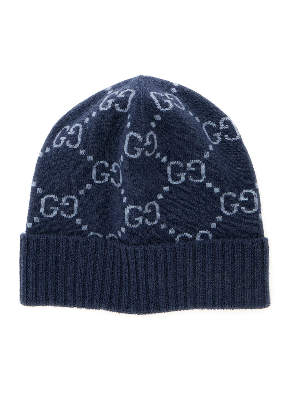 Gucci Men Blue Beanie With All-Over Gg Motif In Cashmere Woman